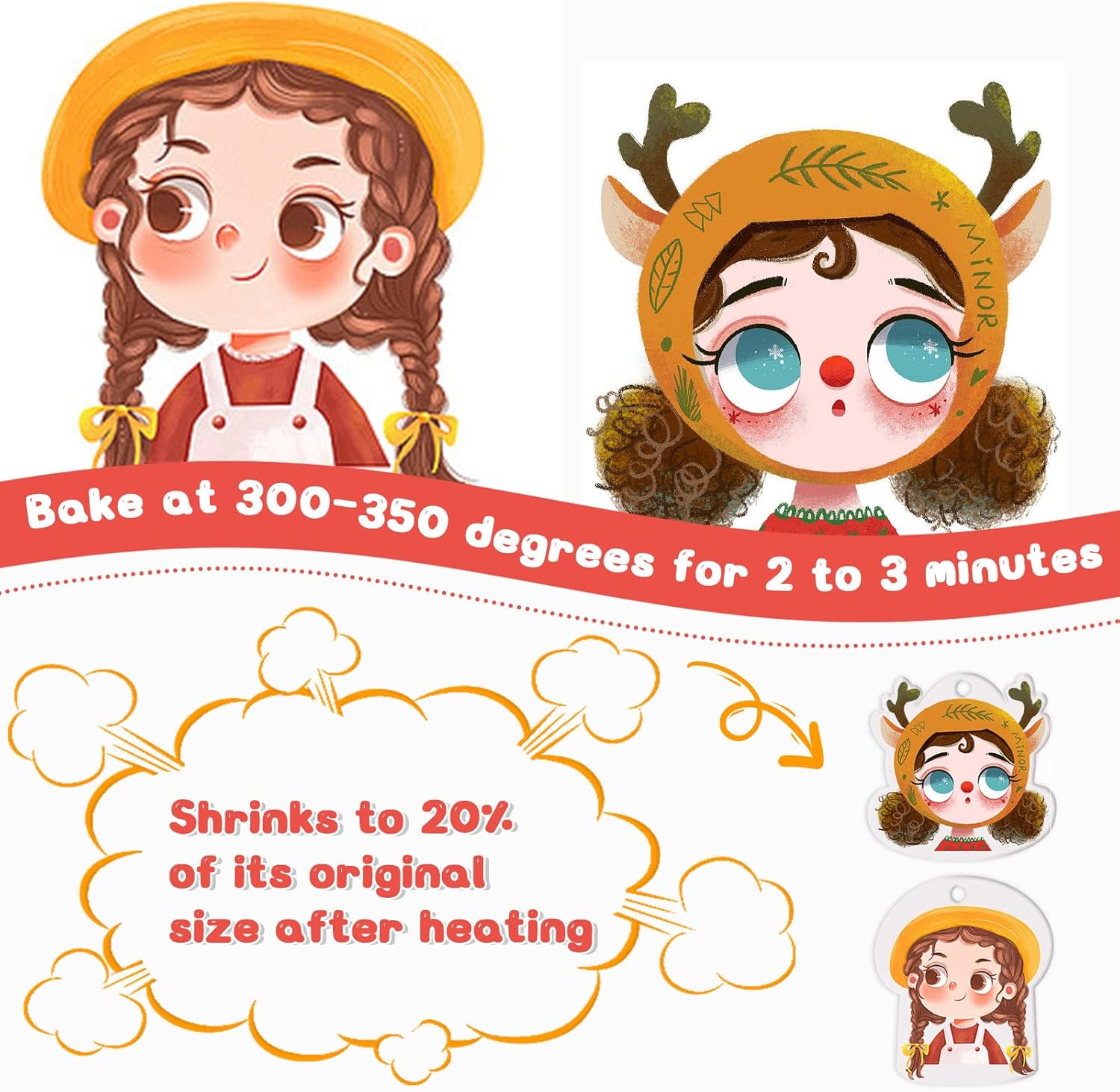 - 🎄 Schrumpffolie Set - Dieses Set enthält 25 Blatt Schrumpfpapier 20 x 14,5 cm, 1 Locher, 10 Karabinerverschlüsse, 100 offene Ringe, 50 Schlüsselanhänger und ein Anleitungsblatt. Lassen Sie Ihrer Fantasie und Kreativität freien Lauf und gestalten