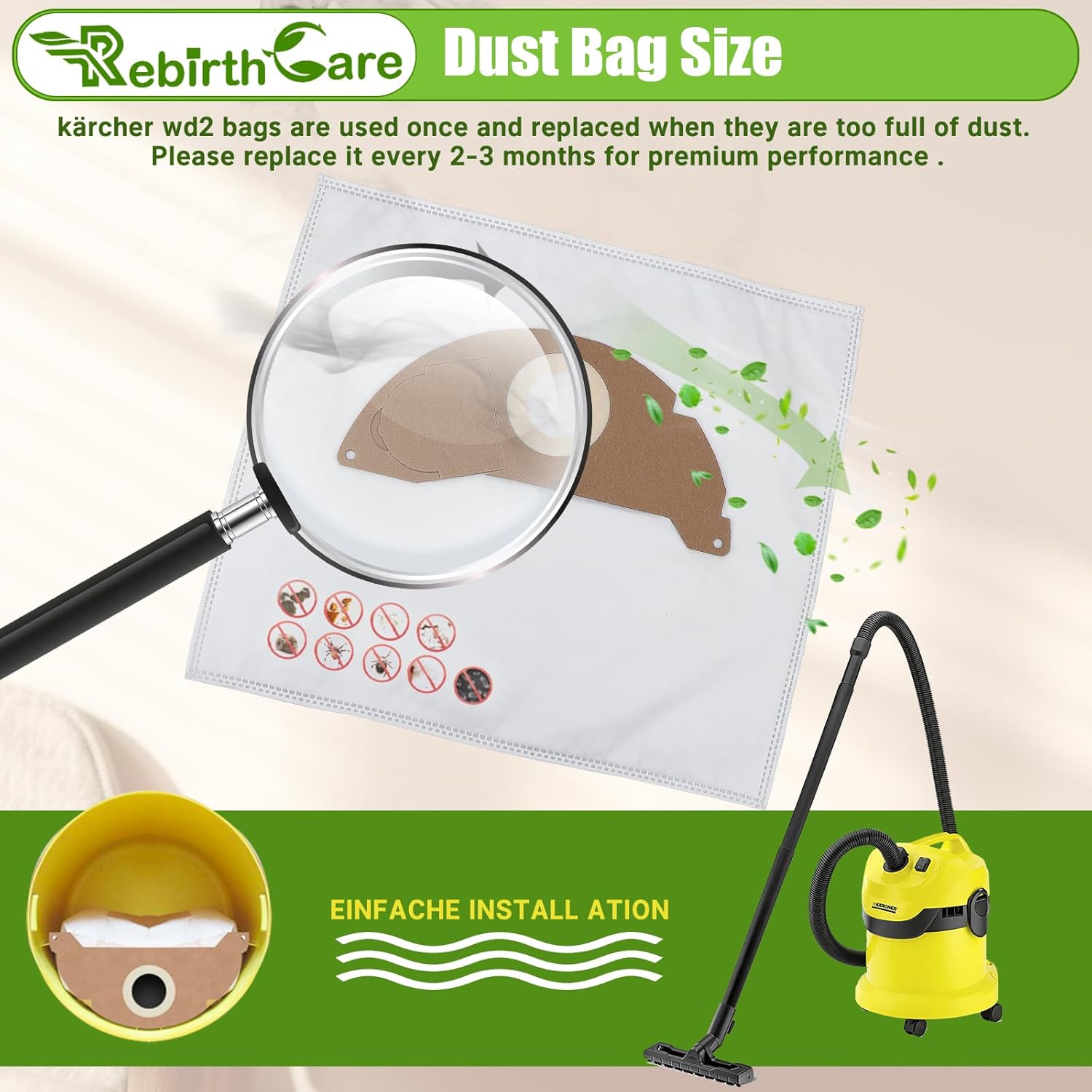 - 【Reissfest & robust】3-lagig wd2 zubehör staubsaugerfiltertüten filtersack set für kärcher mv2 premium beutel filtertüten,extrem reissfest und robust.Bestens geeignet bei starker beanspruchung, wie dem einsaugung von grobem und feuchtem schmutz.