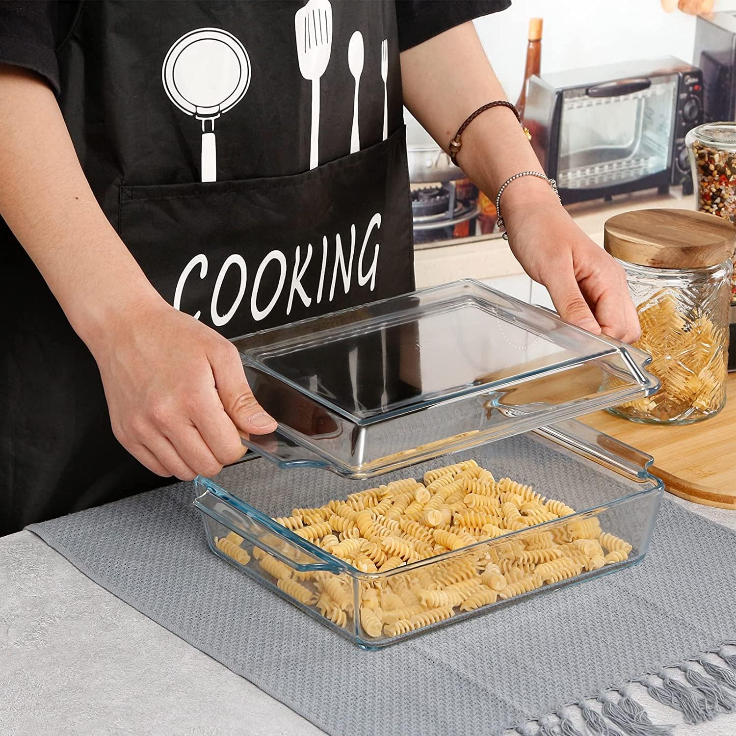 - 【Deckel aus gehärtetem Glas】Verwenden Sie die Auflaufform mit aufgesetztem Glasdeckel in der Mikrowelle, reduzieren Sie die Verwendung von Frischhaltefolie und Plastikfolie