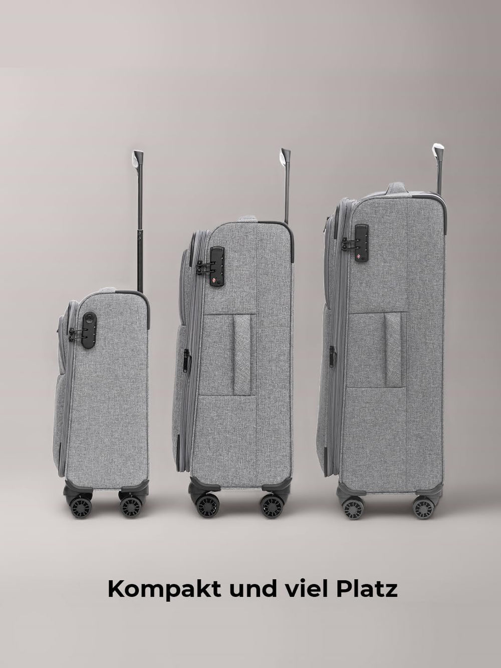 - KOFFERSET: Die Koffer bieten mit ihren verschiedenen Grössen (Handgepäck: 37 cm x 23 cm x 55 cm | 2,26 kg, mittelgross: 42 x 24 x 67cm |2,72 kg, gross: 46 cm x 30 x 77 cm | 3,23 kg) viel Stauraum für längere Reisen oder Familienurlaube. Alle Koffer