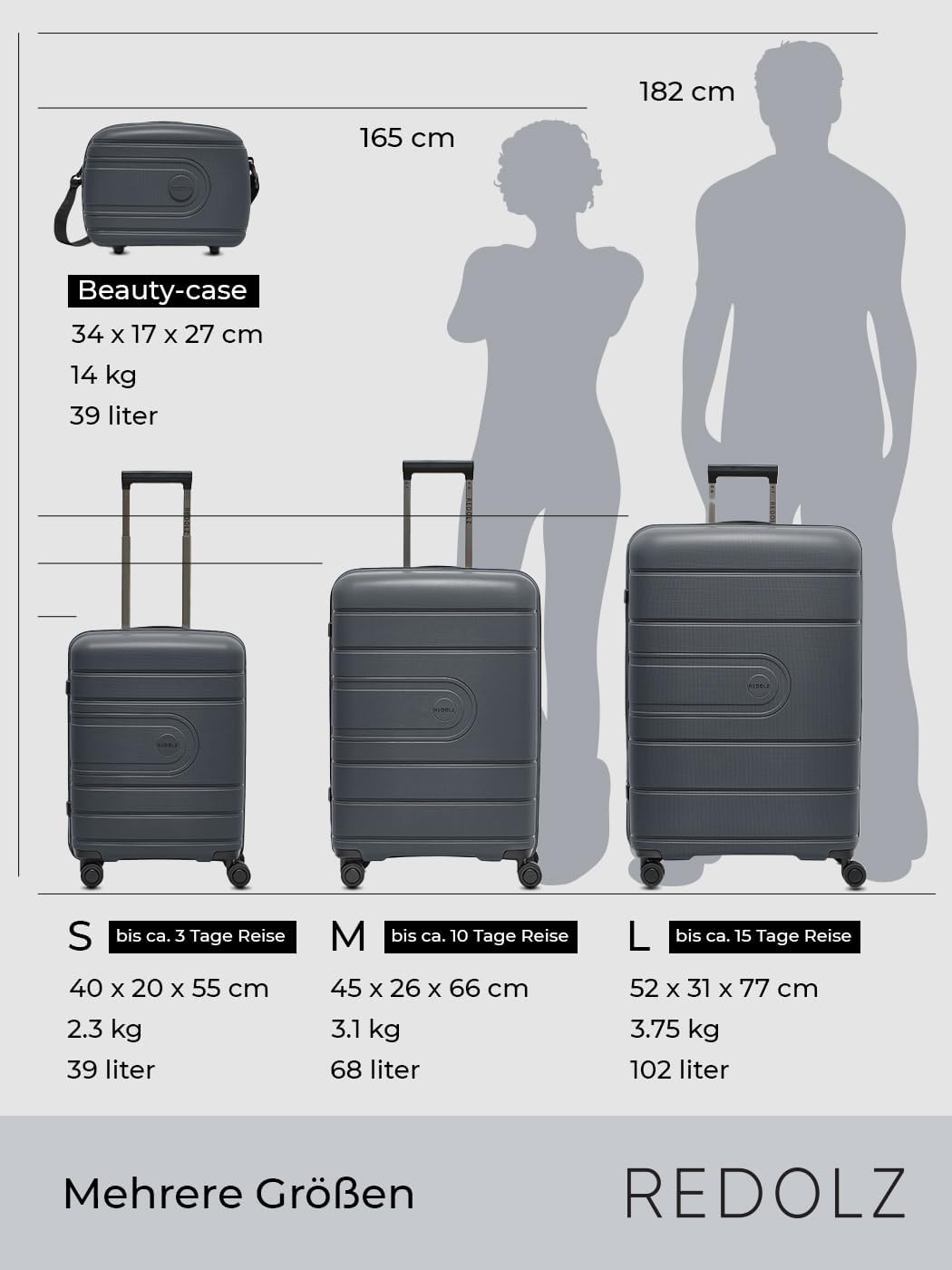 • QUALITÄT UND DESIGN: REDOLZ konzipiert und designt seine Produkte seit 2007 in Deutschland. Qualitativ hochwertige Koffer zeichnen sich durch sorgfältige Verarbeitung, Langlebigkeit und Funktionalität aus. Ein wichtiges Merkmal der Koffer aus der