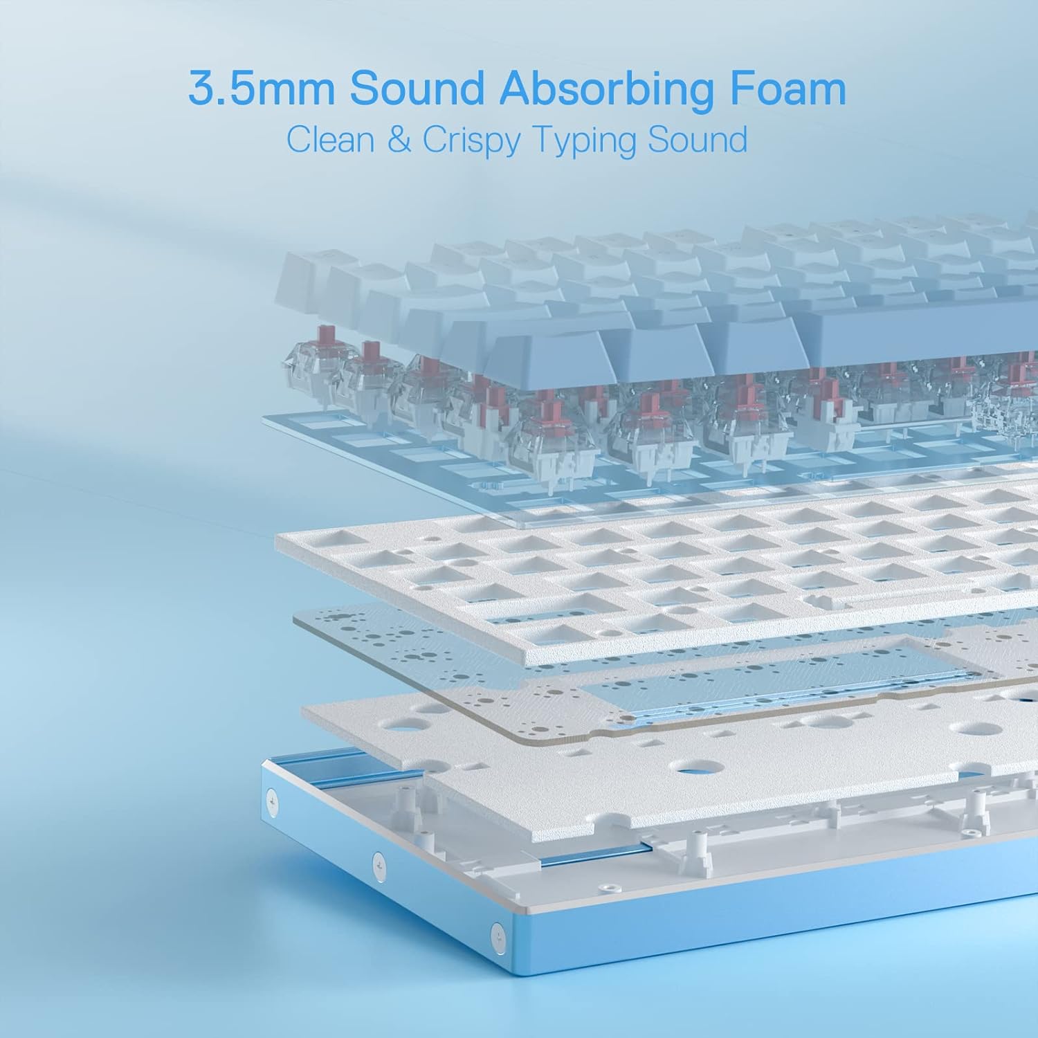 - Blaue Gradient-Tastenkappen: Farbverlauf-Design mit durchscheinender Schrift, mit Lichtern, um die mechanische Tastatur RBG Lichteffekte blendender zu machen und eine Spielatmosphäre zu schaffen. Bringen Sie eine angenehmere Stimmung beim Spielen oder