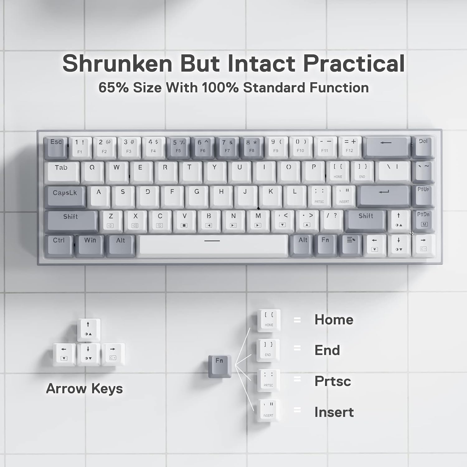 - Kabelgebundenes 68-Tasten-Layout - Redragon 65% Layout K631 im kabelgebundenen Modus erfüllt den Bedarf des Benutzers an separaten Pfeiltasten und zusätzlichen Funktionstasten. Das ultrakompakte und leichte Slim-Design mit 68 Tasten macht wertvollen