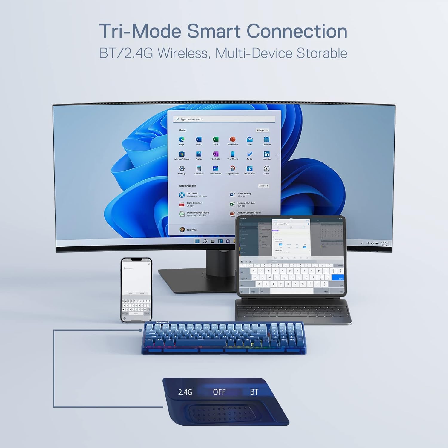 - Sichtbarer 3000mAh-Akku - Der eingebaute 3000mAh-Akku sorgt für eine längere Lebensdauer und verhindert, dass Sie sich wegen einer schwachen Batterie Sorgen machen müssen. Die Kapazität ist ebenso transparent wie die Tastatur. Mit der