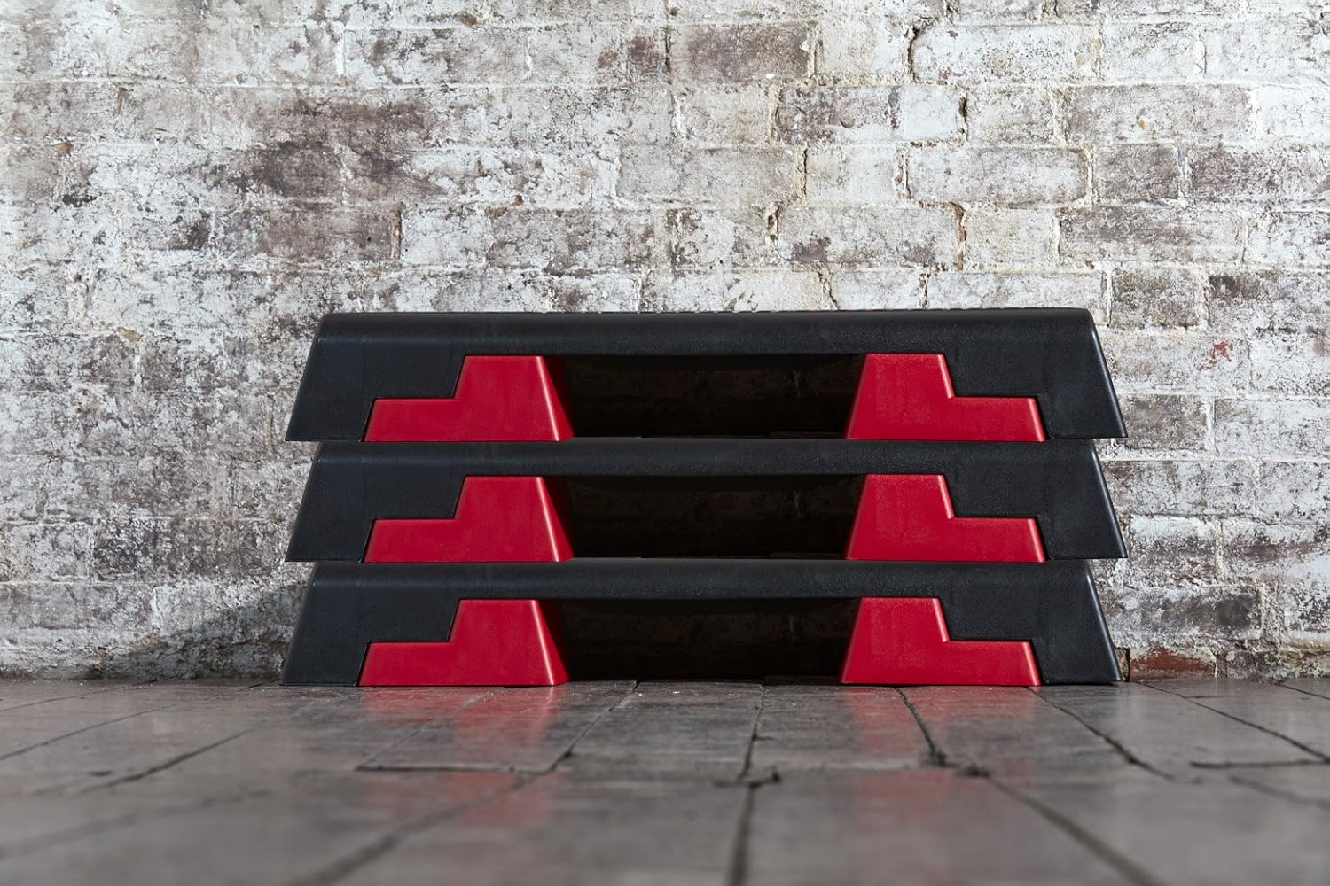 • Die Entwicklung des Reebok Step bietet 3 schnell anpassbare Höheneinstellungen (15/20 / 25cm), mit denen Sie die Intensität Ihres Aerobic-Trainings an Ihr persönliches Fitnessniveau anpassen können. Klicken Sie einfach und verriegeln Sie die Füsse auf die gewünschte Höhe und los geht's. Die rutschfesten Gummifüsse sorgen für eine solide, stabile Fitnessplattform