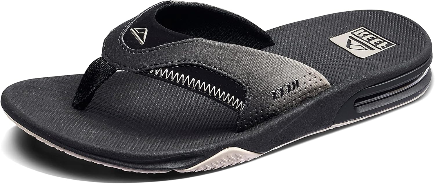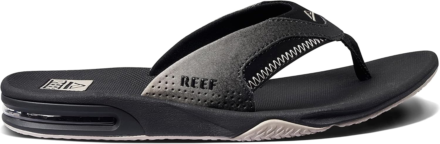 PRODUKTBESCHREIBUNGEN Das ist die Sandale des legendären dreimaligen Surf-Weltmeisters und zeitlosen Surfathleten Mick Fanning, die ultimative Sportsandale aus komfortablem wasserfreundlichem Synthetik-Nubuk-Obermaterial. Mick verlässt sich auf das konturierte, spritzgegossene EVA-Fussbett mit anatomischer Fussgewölbestütze und einem 360-Grad-Fersen-Airbag, der aus gutem Grund in weichem Poly-Polyester-Gewebe eingeschlossen ist. Und im Spassbereich verfügt sie über einen Flaschenöffner, der in das Fussbett integriert ist, um nach einer Surfrunde oder nach einem Bad im Pool Ihr Mineralwasser zu öffnen. Reef Icon Fischgräten-Gummiaussensohle. Die Sandalen eines Champion.