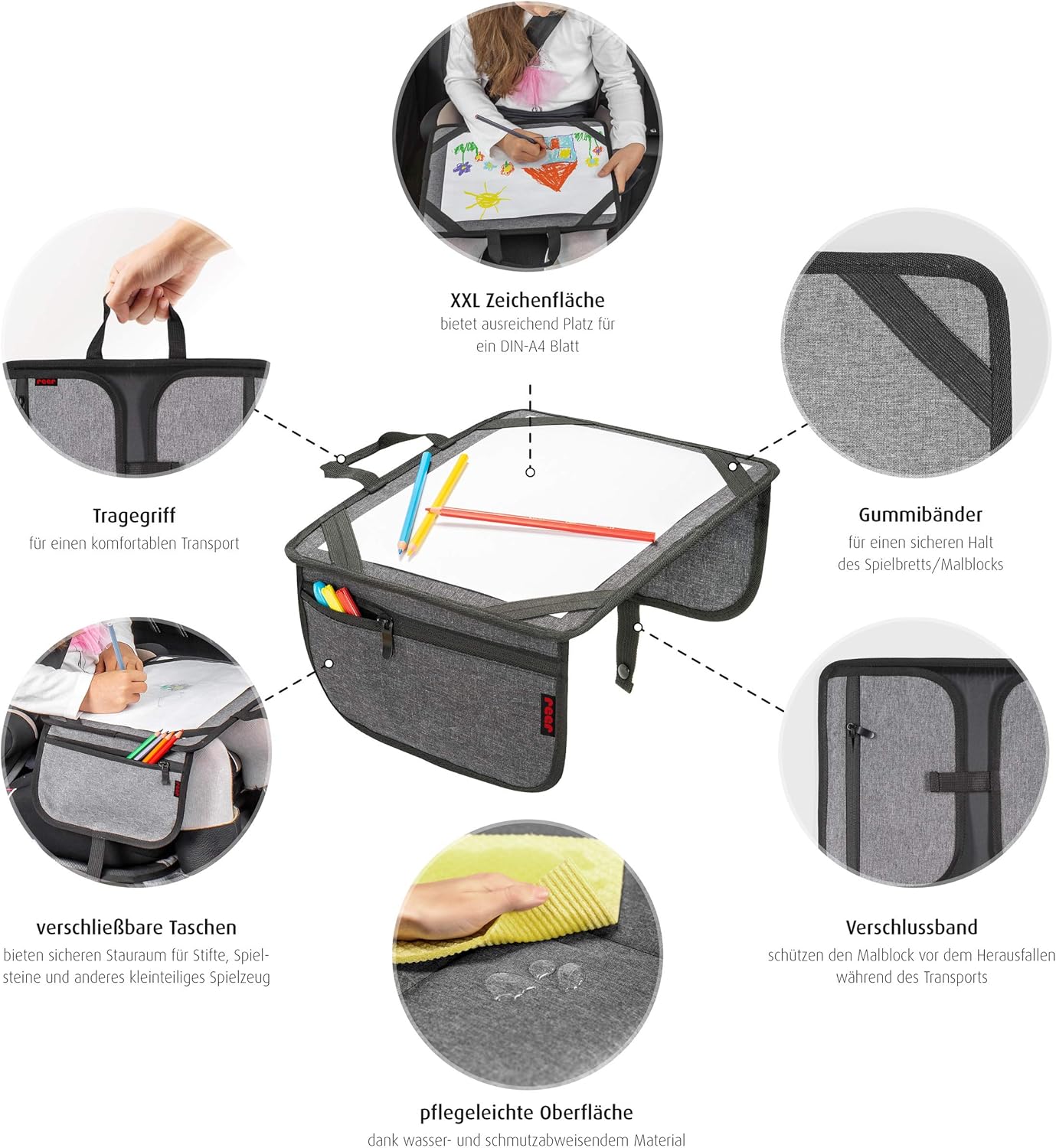 - Produkt 2: Spieltisch für lange und kurze Reisen: Die stabile Unterlage lässt sich hervorragend für Spiele verwenden, Ihr Kind kann darauf hervorragend malen (mit Fixiergummis)