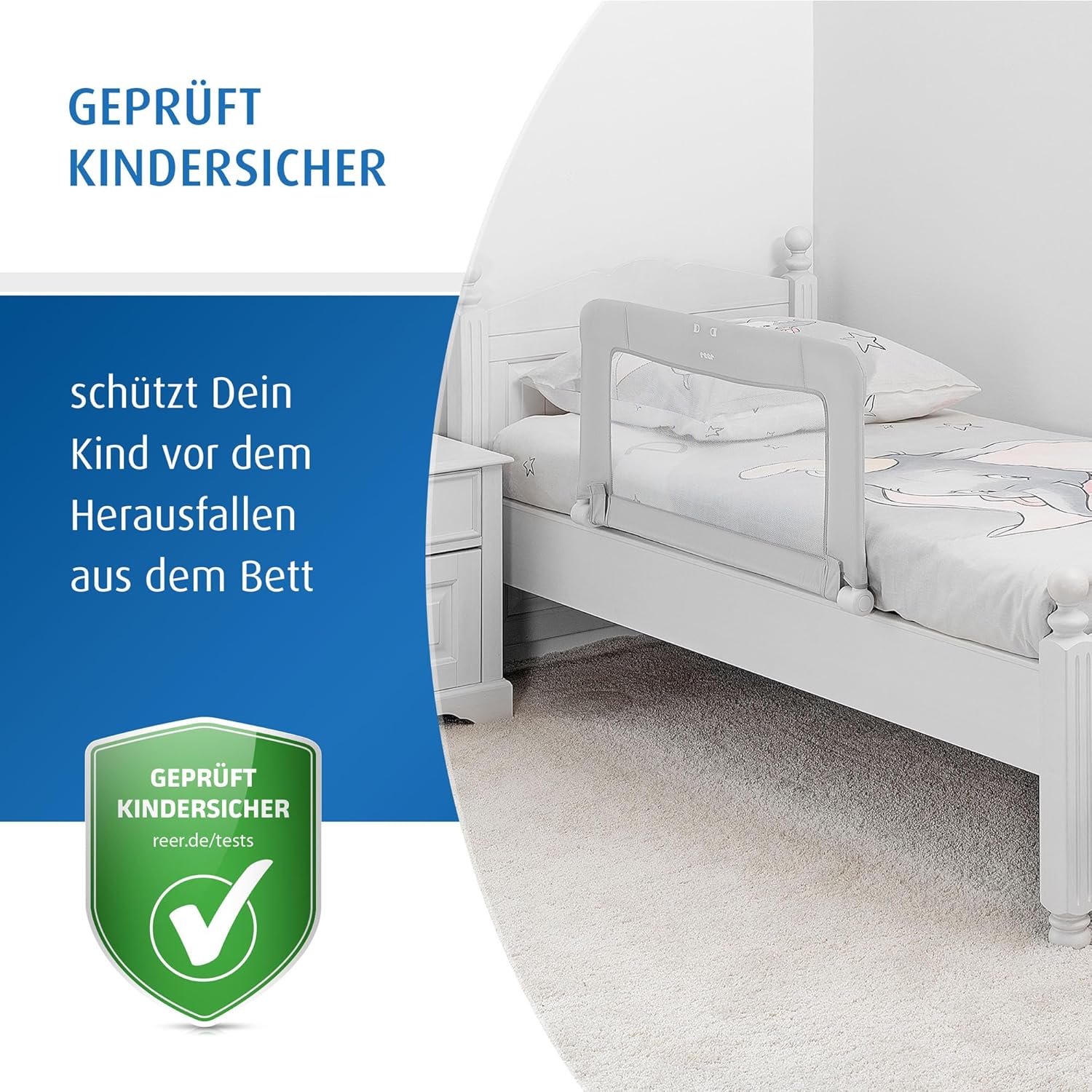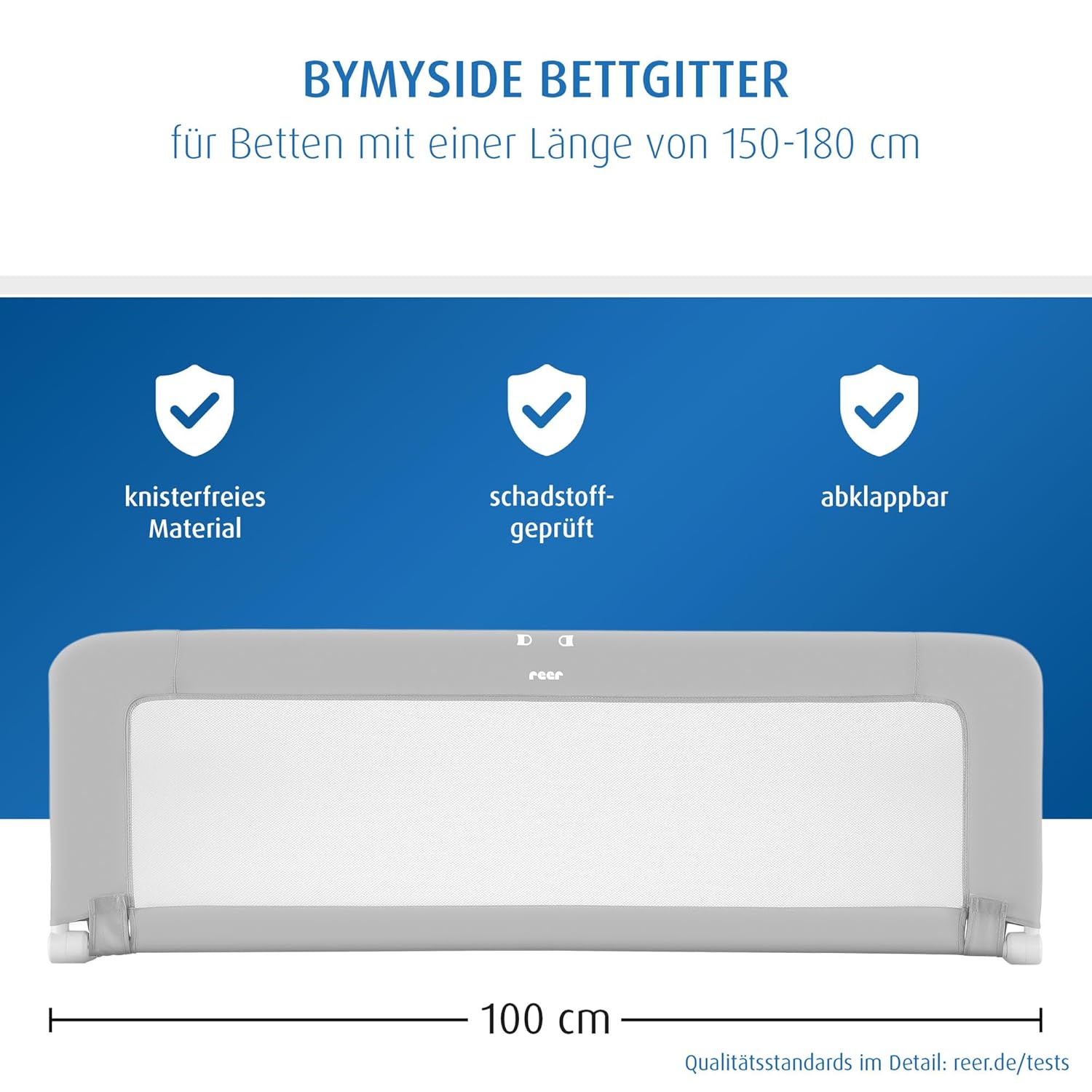 - Extra hohes Bettgitter für Ihr Baby: Mit 50 cm extra hoch für noch mehr Sicherheit beim Schlafen. Die weiche und knisterfreie Nylonbespannung sorgt für Geborgenheit. Für Matratzenlängen von 150-200cm