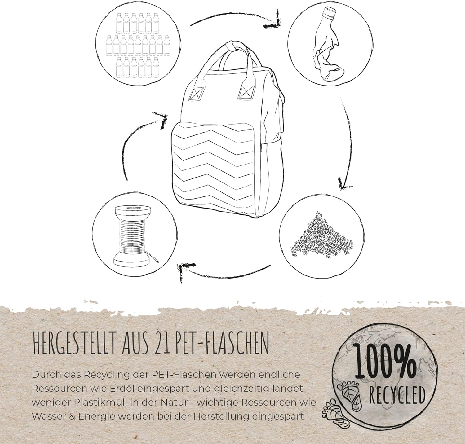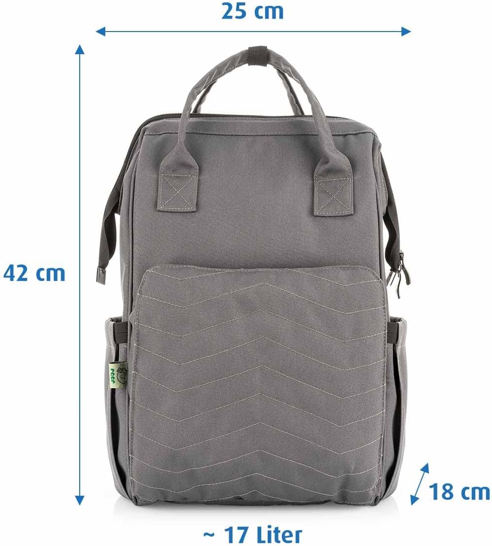 PRODUKTBESCHREIBUNGEN praktischer Wickelrucksack mit grosser Innentasche, Reissverschluss, grossem Aussenfach mit Isolierbeschichtung ,grössenverstellbare, gepolsterte Schultergurte und vielen weiteren kleinen Taschenmit praktischer Wickelunterlage für unterwegs