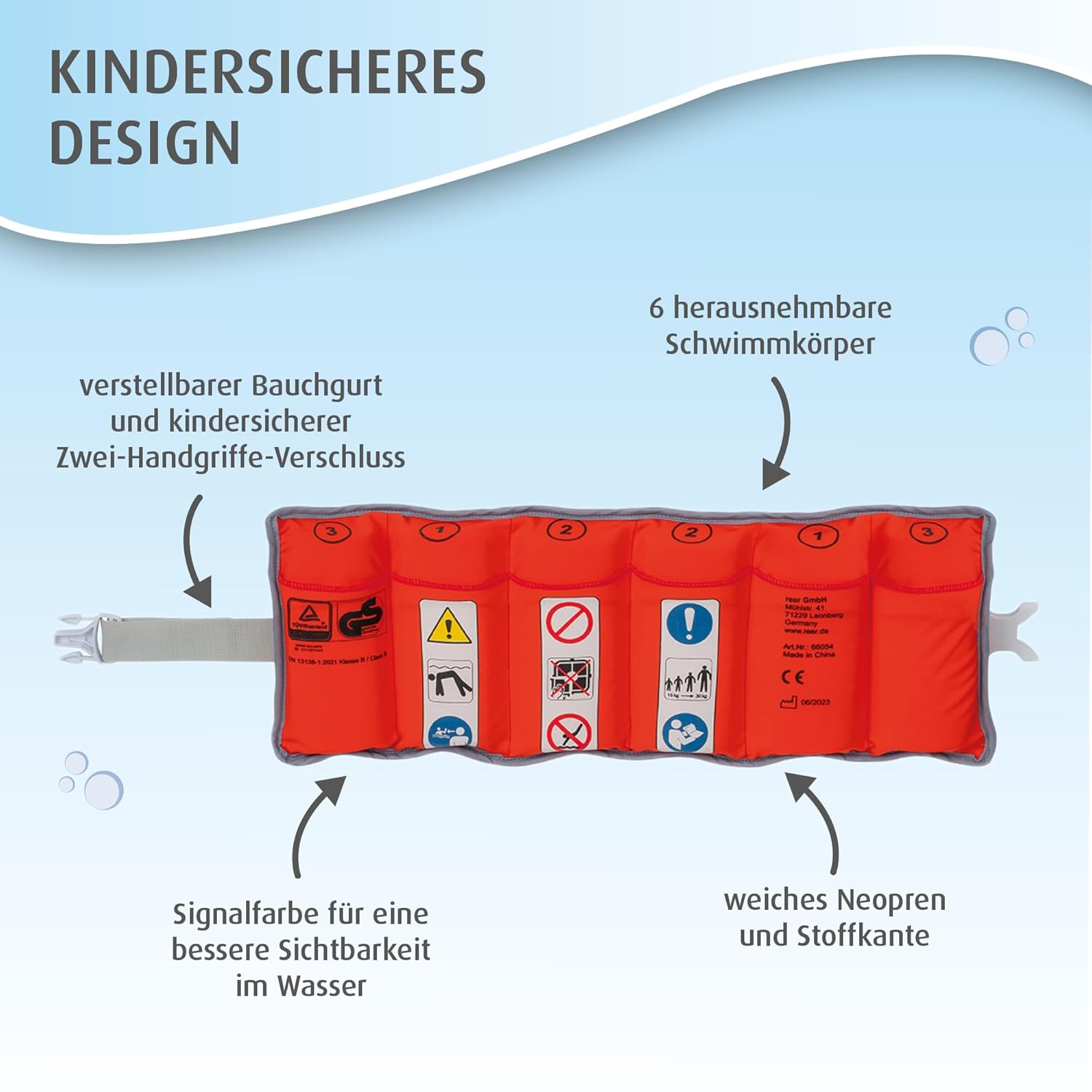 - INDIVIDUELL ANPASSBAR: Diese Schwimmhilfe ist mit individuell herausnehmbaren Feststoff-Schwimmkörpern ausgestattet, die es ermöglichen, den Auftrieb je nach Schwimmfähigkeit des Kindes anzupassen. So kann der Gürtel mit dem Schwimmfortschritt des