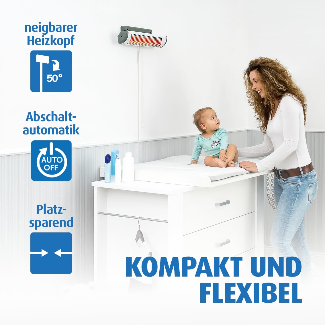 - Der Zugschalter macht das Ein- und Ausschalten des Heizstrahlers besonders leicht, auch hinter dem Wickeltisch