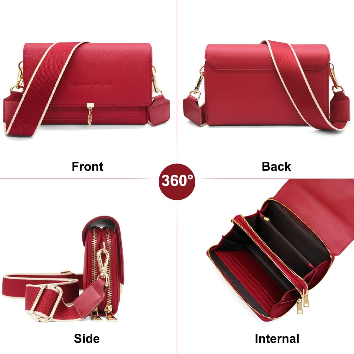 - Crossbody Bag Damen Struktur: Die handytasche mit geldbörse zum umhängen hat 2 Hauptfächer mit Reissverschluss und 1 Münzfach mit Reissverschluss für Handy, Schlüssel, Lipgloss und andere kleine Gegenstände. 12 Kartenfächer für Kreditkarten,