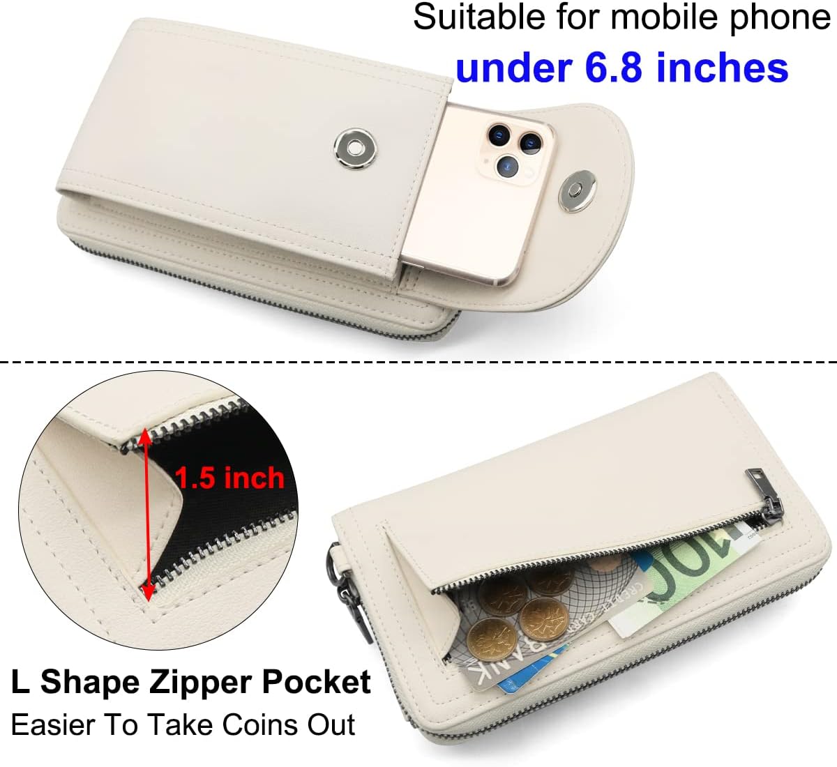 - Struktur der Handy Tasche Damen Umhänge: Die handy geldbeutel hat 1 Magnetschnalle Handytasche, 1 Münztasche mit Reissverschluss,12 Kartenfächern, 5 grosse Fächer und 1 seitliches Reissverschlussfach. Genug Platz für Ihre Bedürfnisse. Der