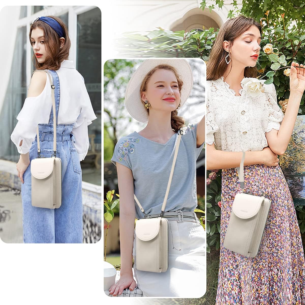 - RFID-Blockierung Handy Schultertasche Geldbörse: Die handytasche mit geldbörse zum umhängen verfügt über einen Interceptor (RFID), der unsere Zahlungskarte durch NFC oder RFID schützen kann. Die damen kleine umhängetasche ist aus weichem und