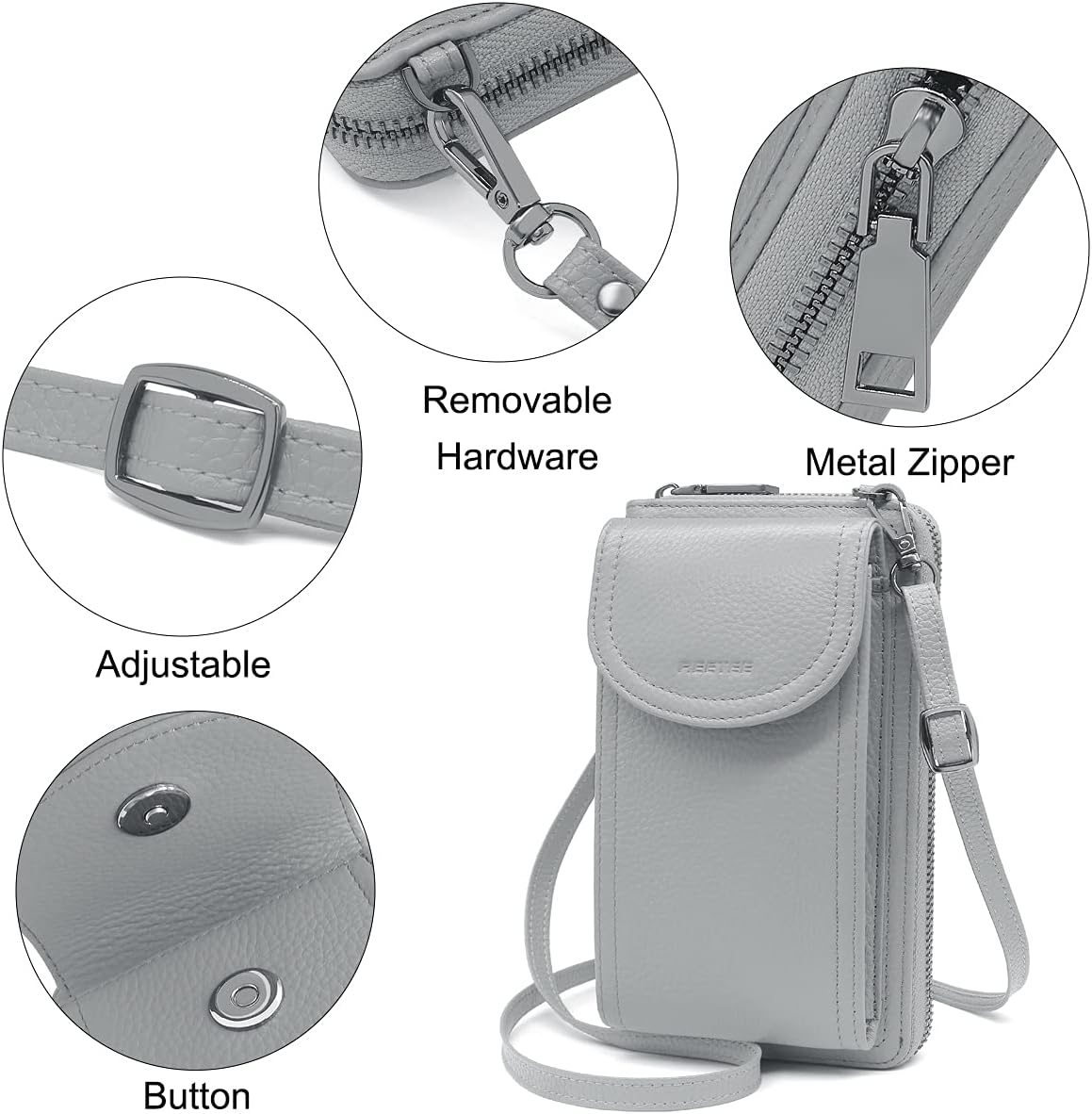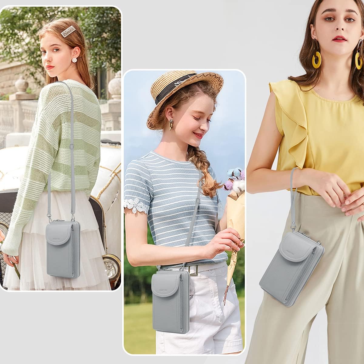 - RFID-Blockierung Handy Schultertasche Geldbörse: Die handytasche mit geldbörse zum umhängen verfügt über einen Interceptor (RFID), der unsere Zahlungskarte durch NFC oder RFID schützen kann. Die damen kleine umhängetasche ist aus weichem und