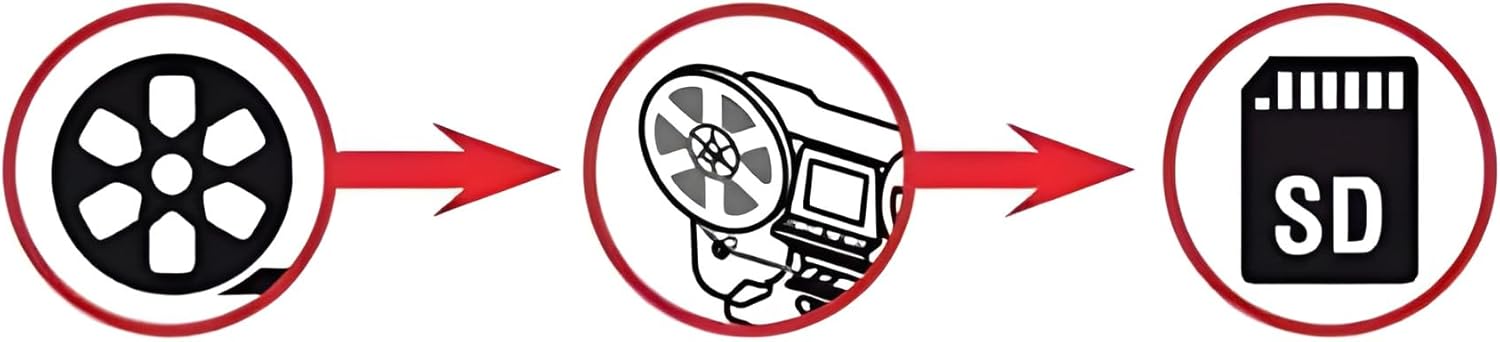 - 🏷️ Direkte Speicherung auf SD-Karte: Scannt den Film mit 2 Bildern pro Sekunde und speichert ihn als MP4-Video in HD-Qualität direkt auf der SD-Karte