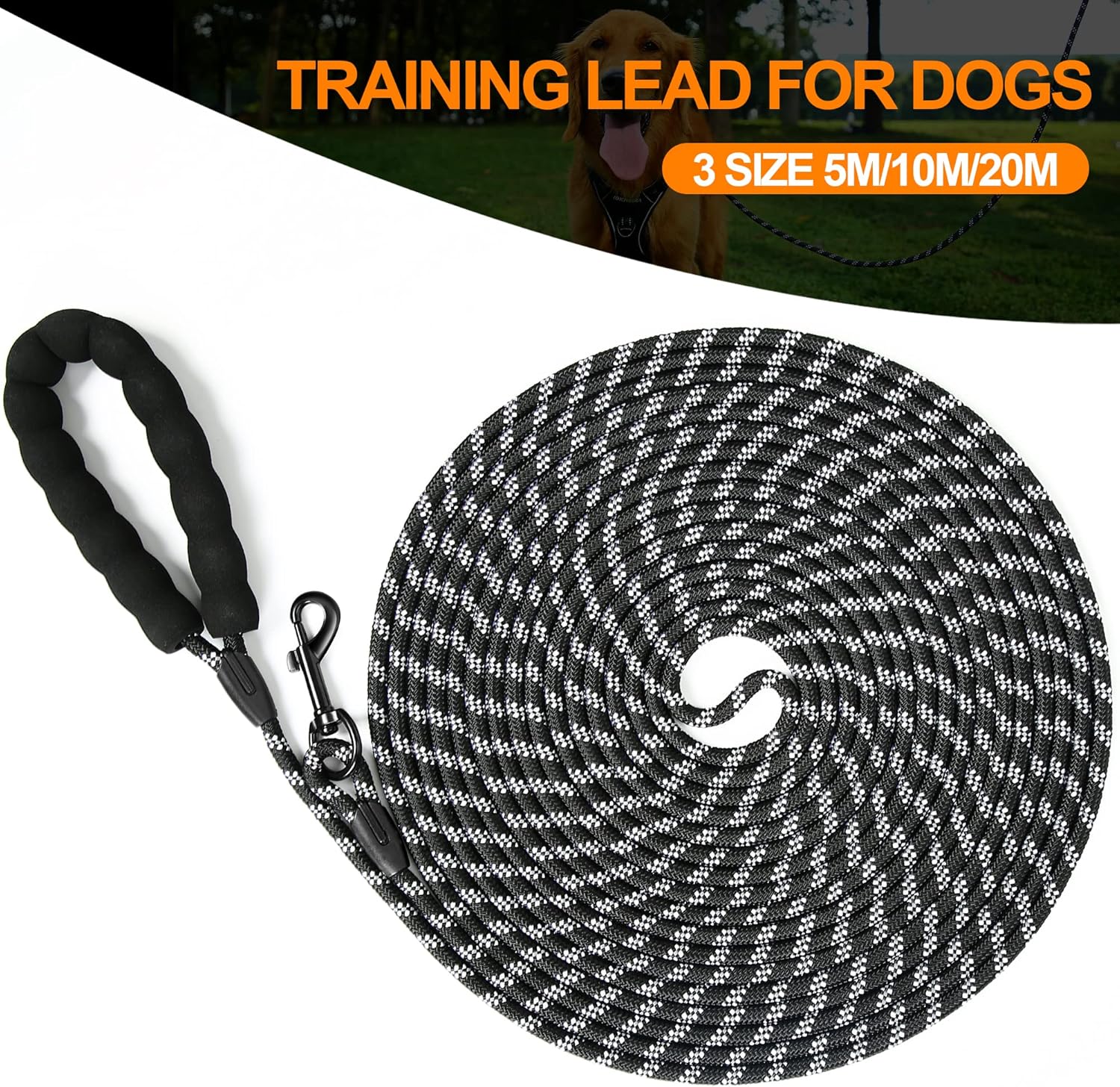 - ★ Drei Grössen zur Auswahl: 0,8cm im Durchmesser, 5M, 10M, 20M drei Längen für verschiedene Trainingszwecke. in schwarz erhältlich. Diese lange Leine gibt Ihrem Hund viele Leinen, ohne zu weit weg zu kommen.