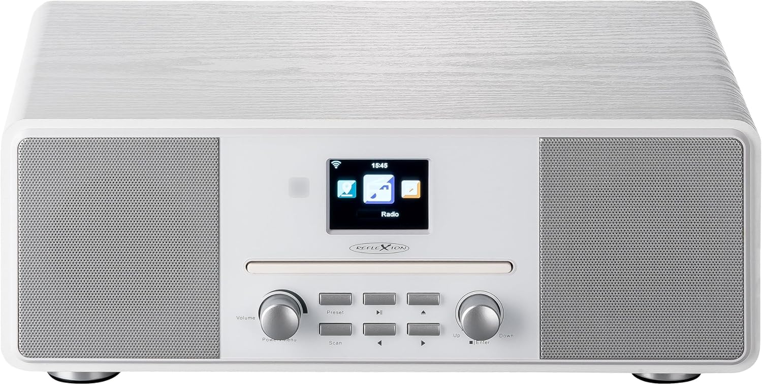 - Hochwertige Verarbeitung durch mattweisse Optik, Weisse Front und Silber-Grauen Reglern + 2x80Watt max. Musikleistung + Wiedergabe von MP3,CD,CD-R,CD-RW & Bluetooth