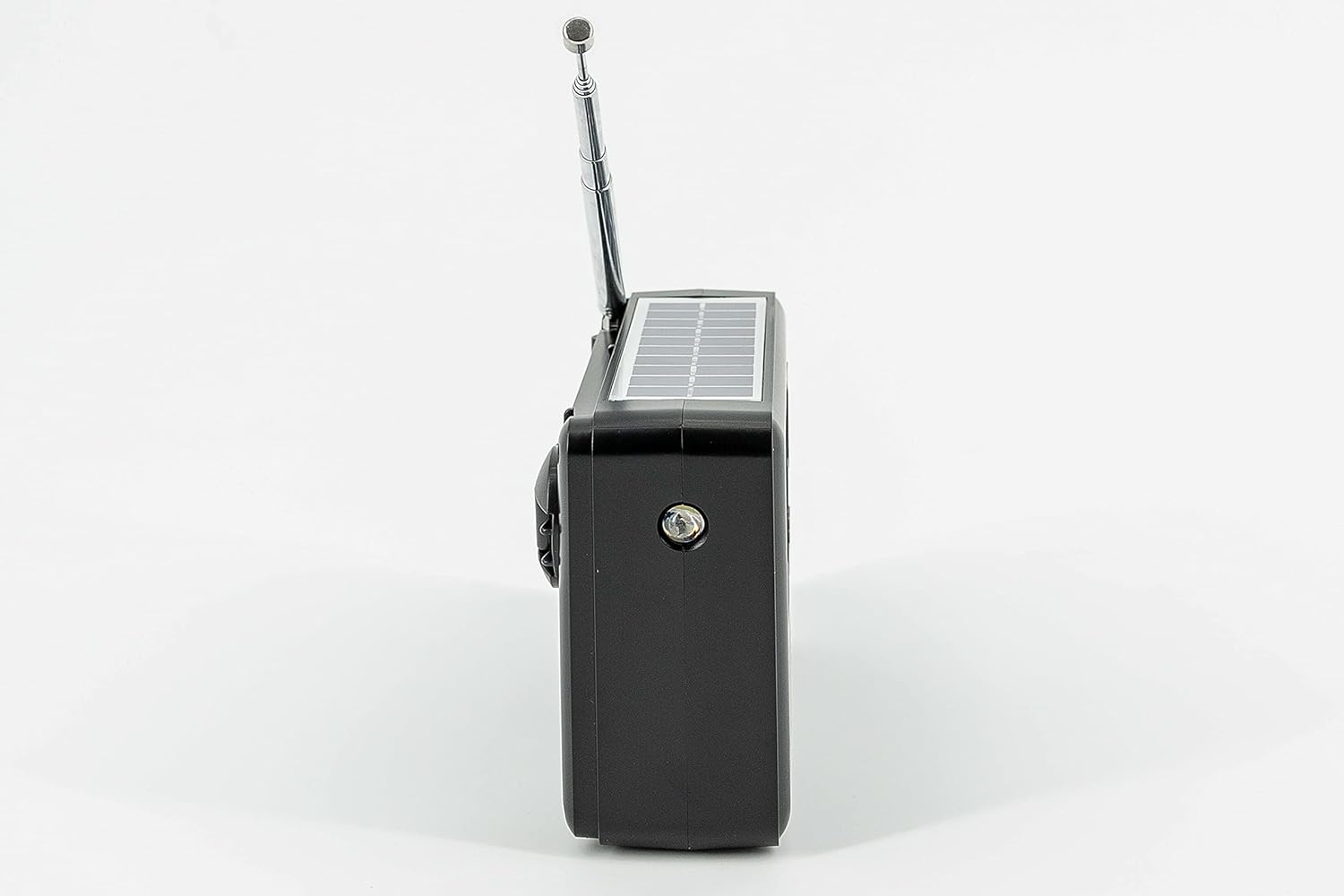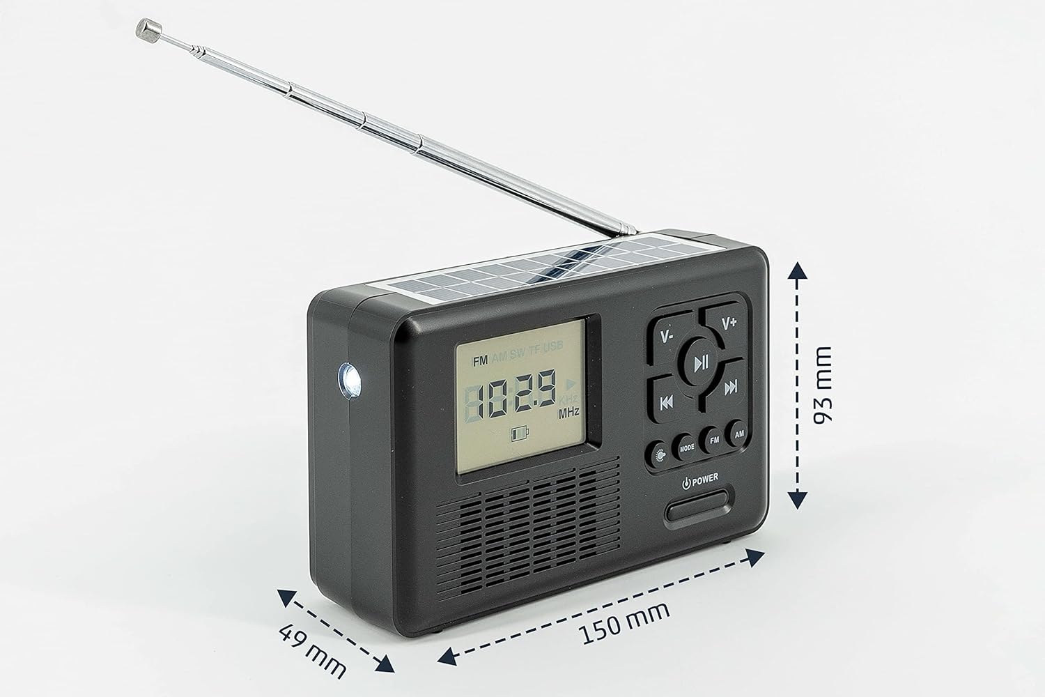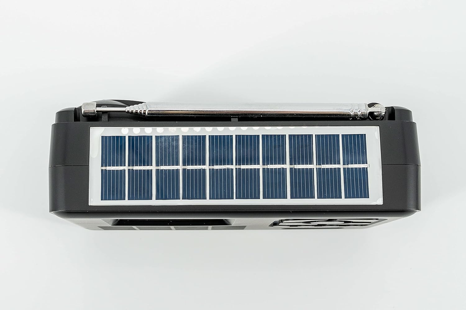 - Der Outdoor-Begleiter: Multifunktionales Outdoor / Camping Solarkurbelradio, stromunabhängig. mit UKW, Bluetooth, USB, Micro SD, Taschenlampe, Uhr mit Alarm, eingebauter Akku 2000mAh und Spritzwassergeschützt