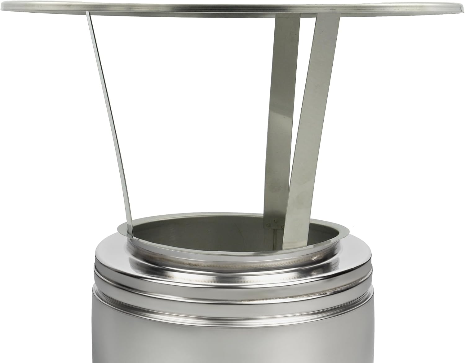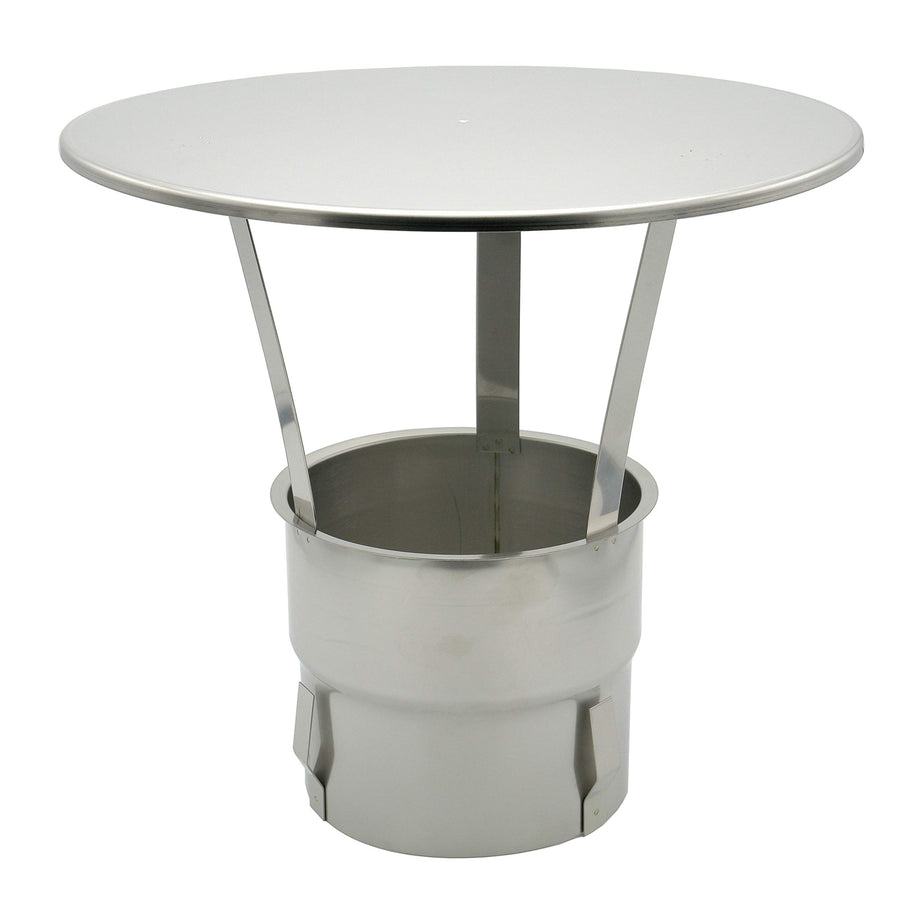 - Montage: Das Einschubrohr ist im Unteren bereich schmaler und besitzt Spannfedern. Damit bleibt die Regenhaube fest im Schornstein und kann ohne verschrauben oder Kleben angebracht werden