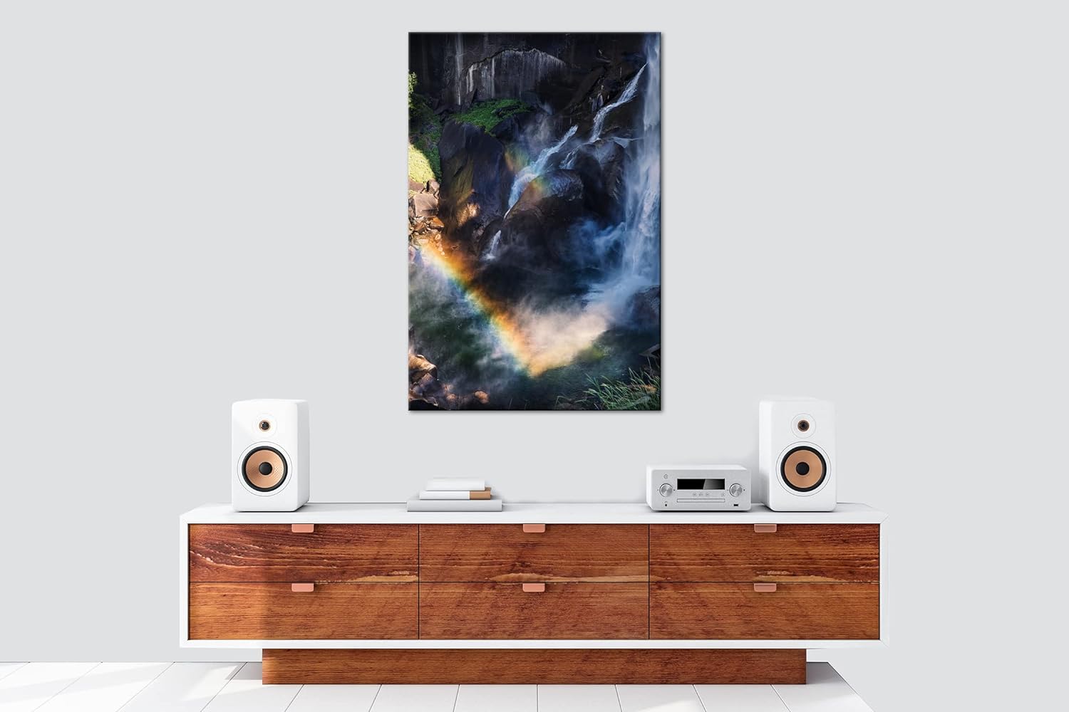 deyoli Regenbogen am Wasserfall Format: 120x80 als Leinwandbild, Motiv fertig gerahmt auf Echtholzra