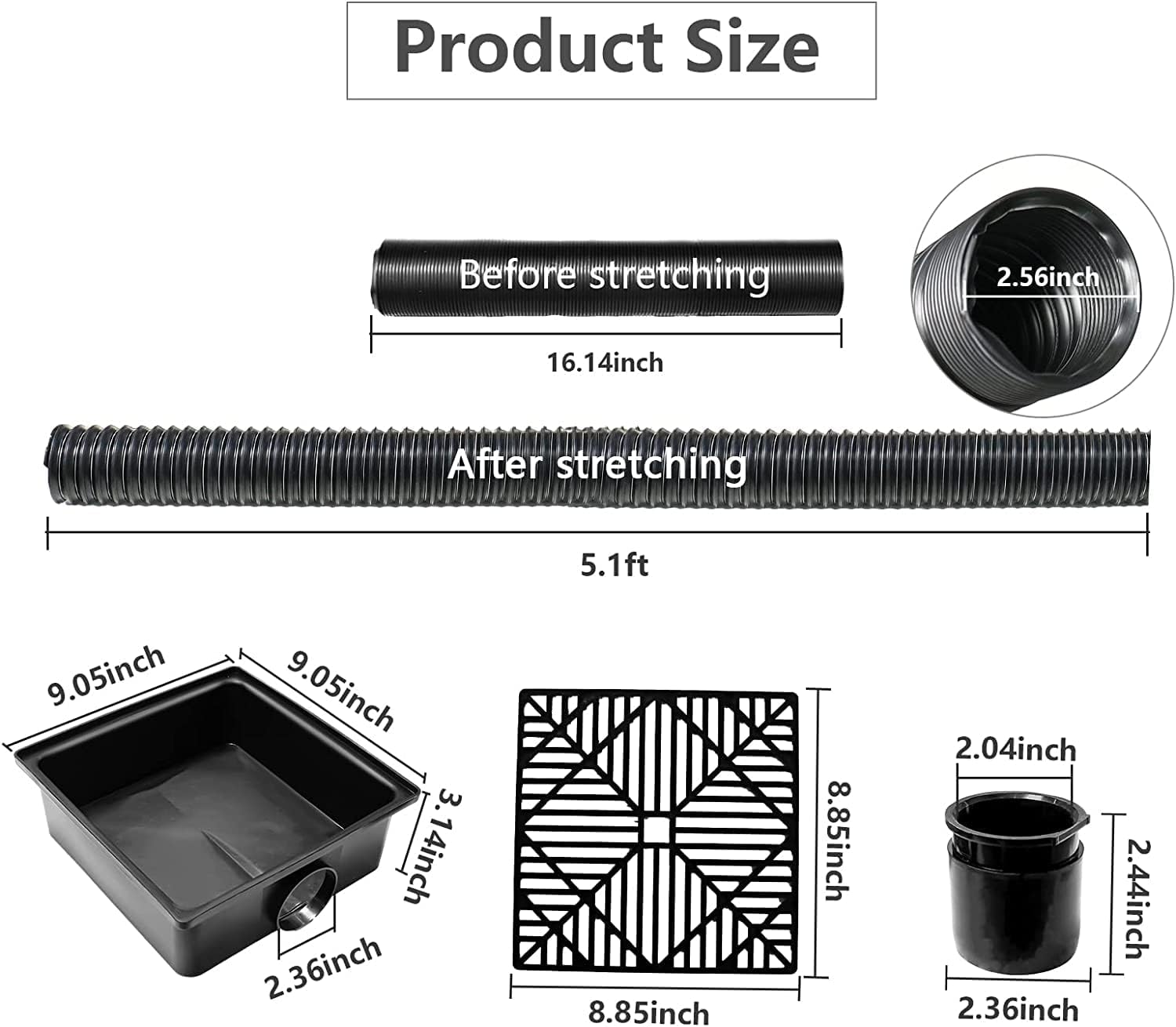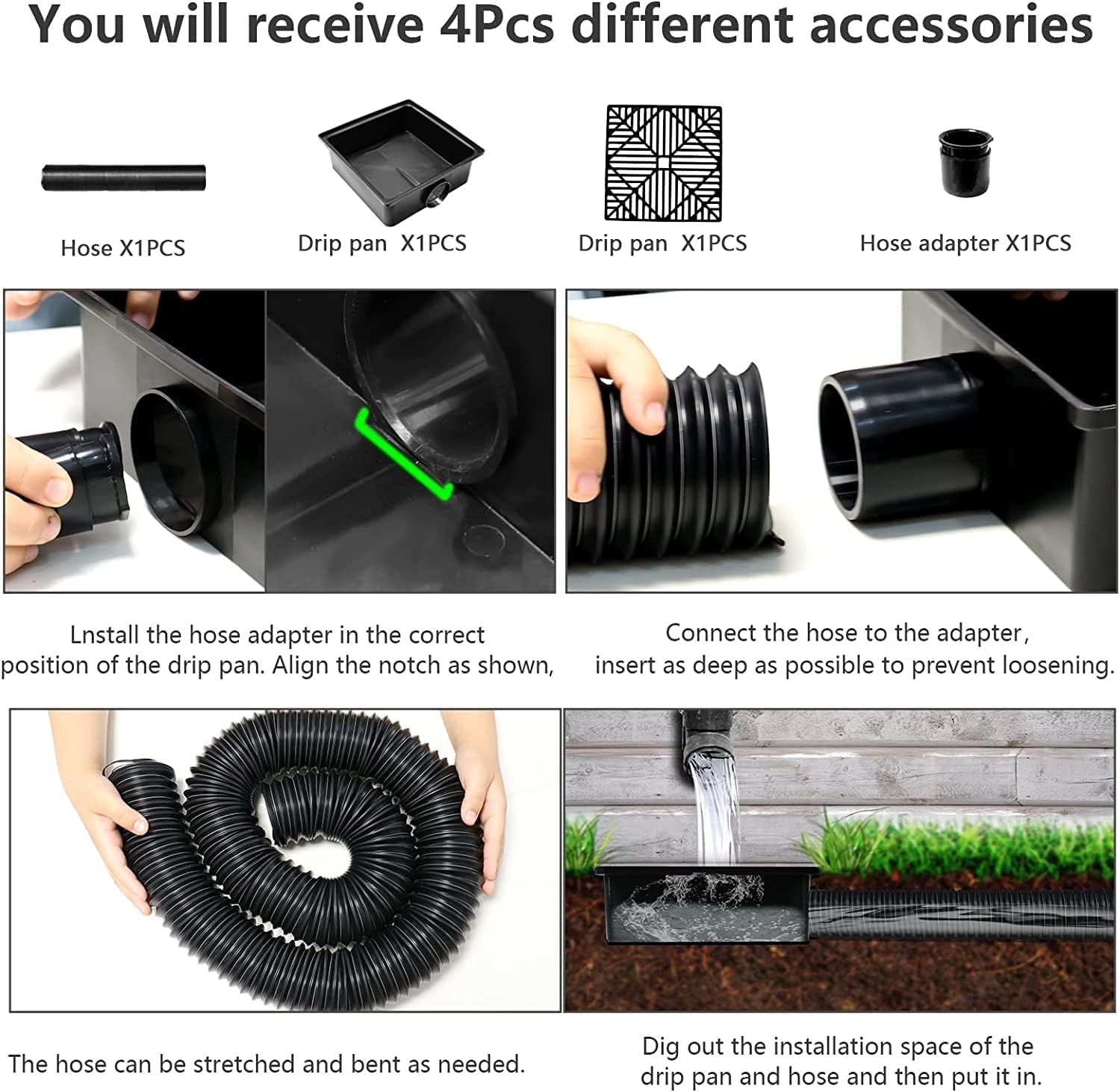 • 【Einfache Installation und kein Auslaufen】 Auffangbecken kann ohne tiefes Graben installiert werden. Für Rohrverbindungen sind keine Adapter erforderlich. Erweitern Sie einfach das Rohr und schrauben Sie es in den Verbinder. Das flache Design kann