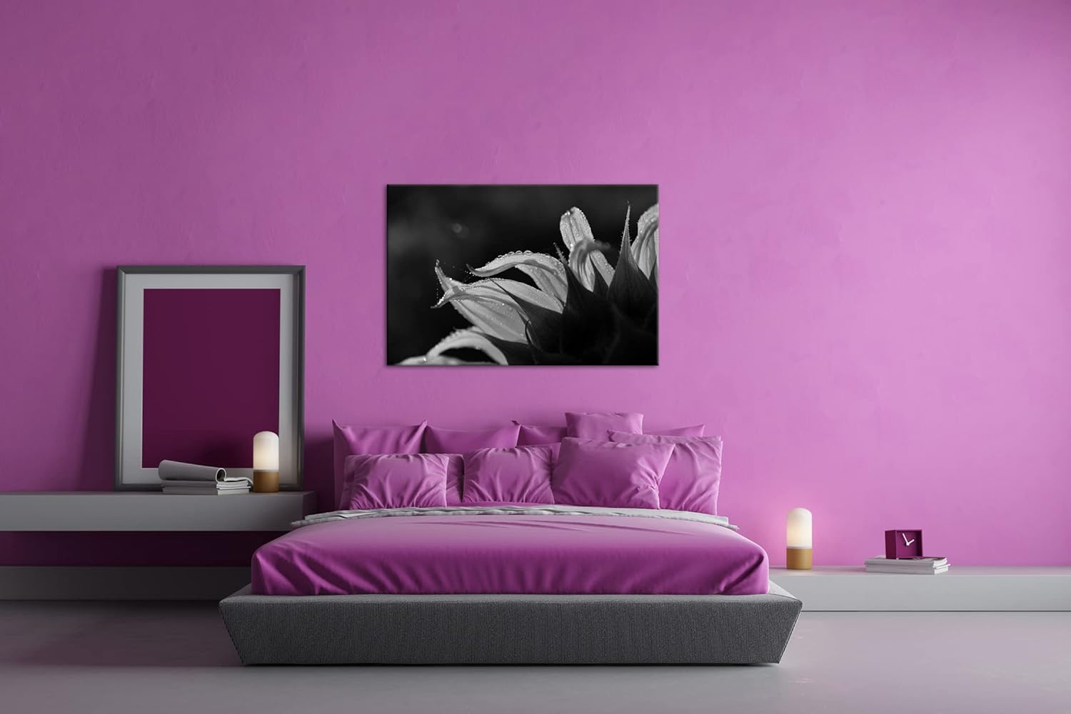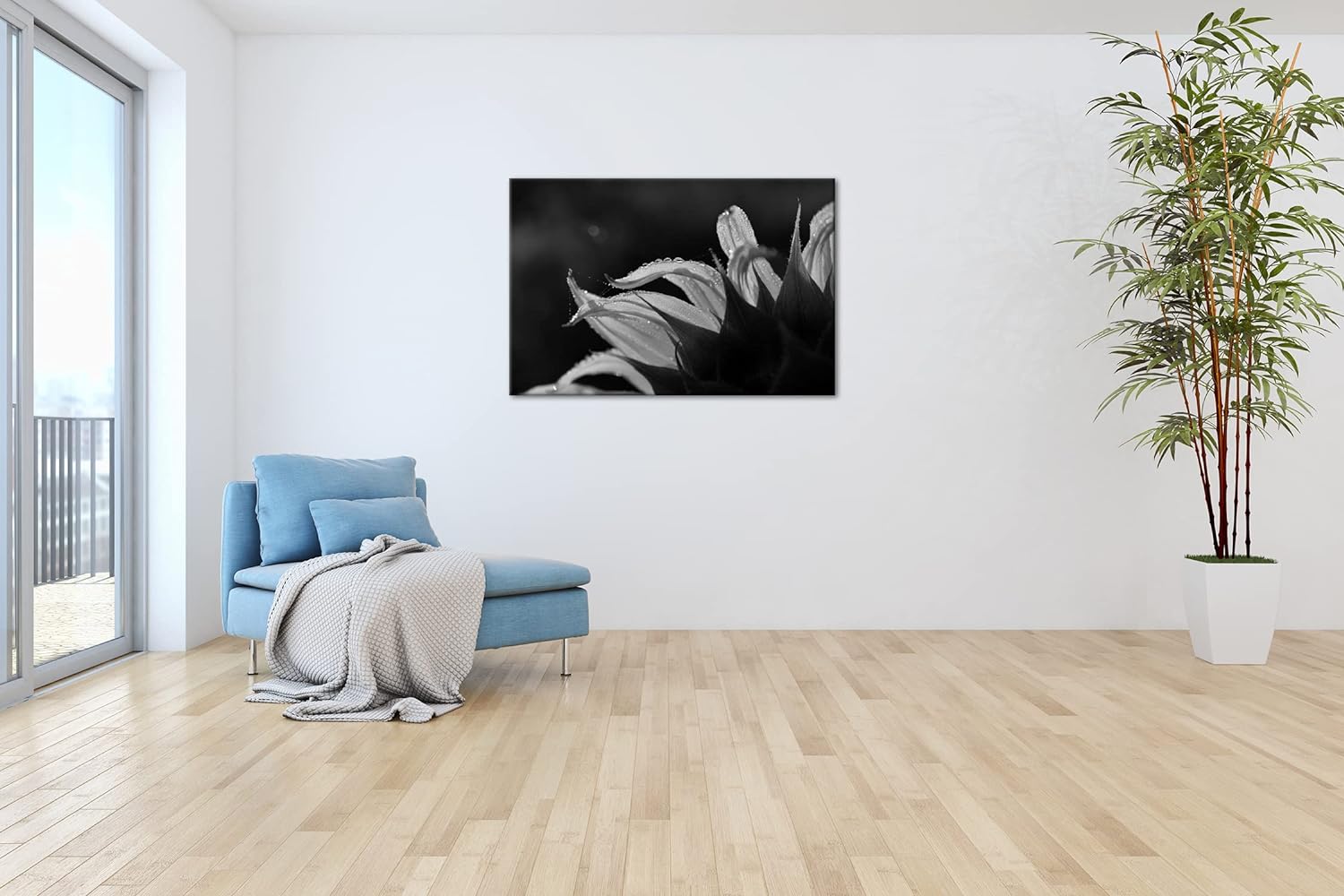 deyoli regnerische Sonnenblume Format: 80x60 als Leinwand, Effekt: Schwarz&Weiss, Motiv fertig gerah