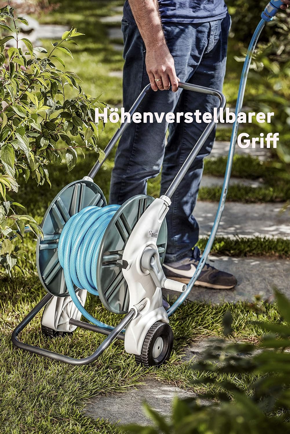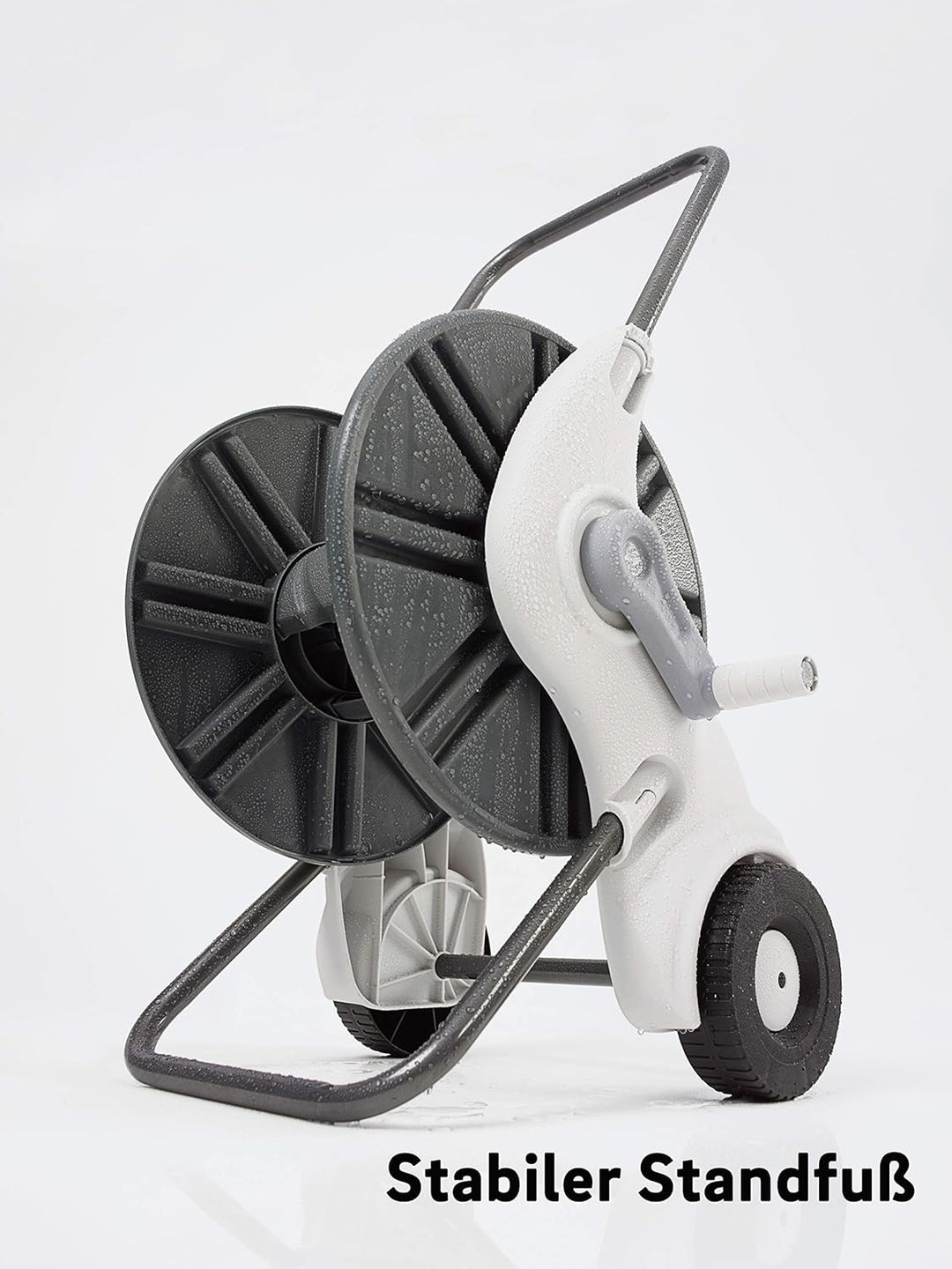 - WICKELKAPAZITÄT bis zu 60m bei 1/2" oder bis zu 30m bei 3/4" Schlauch - bei hochwertigen Schläuchen mit grossem Aussendurchmesser eher etwas weniger