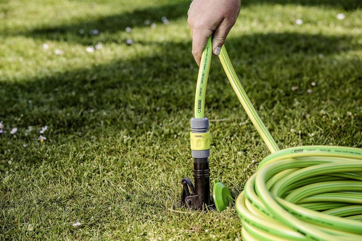 - ANWENDUNG - Anschluss an eine unterirdische Bewässerungspipeline zur praktischen Wasserentnahme mit einem Gartenschlauch an der gewünschten Stelle