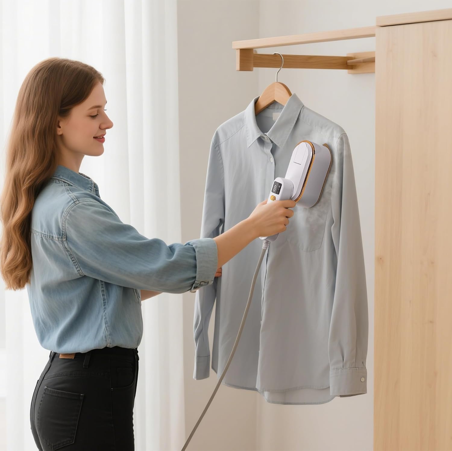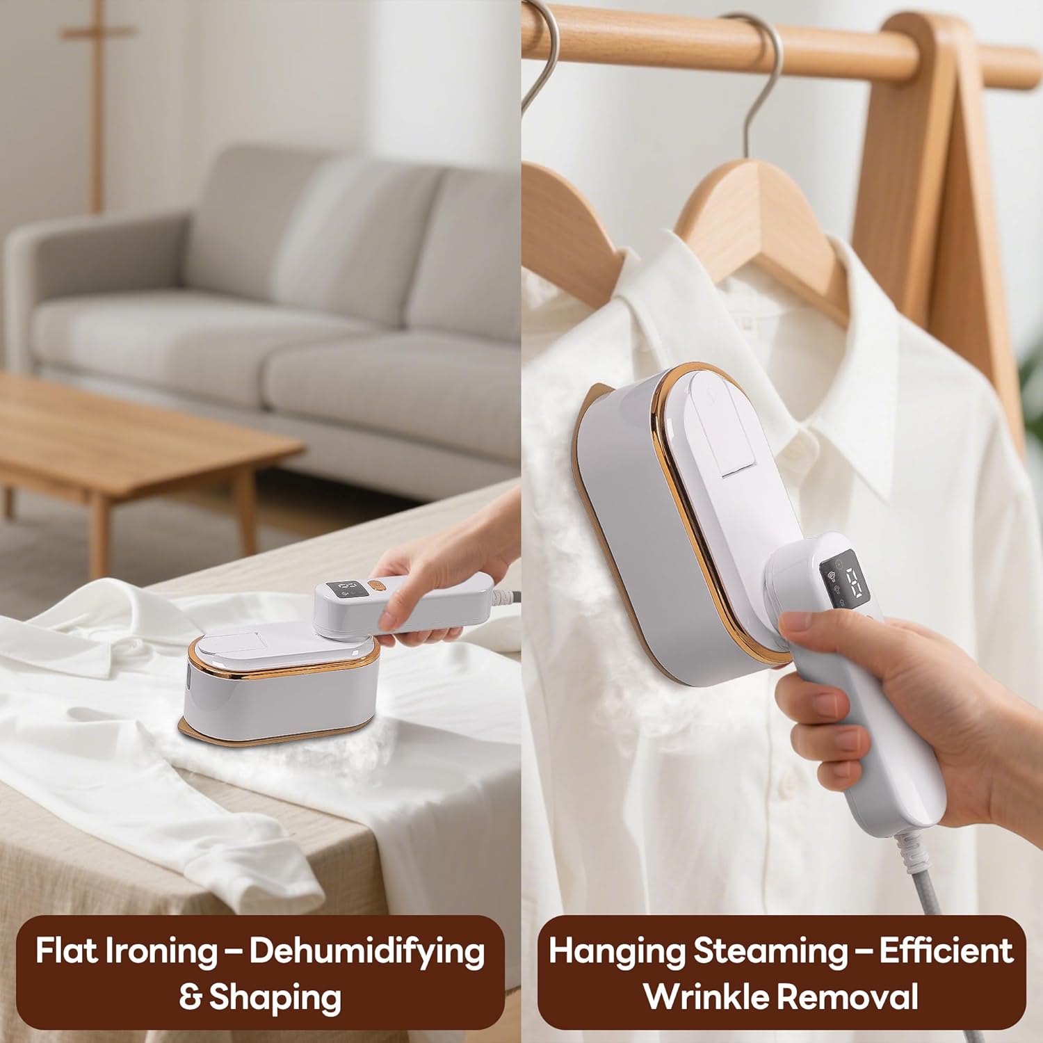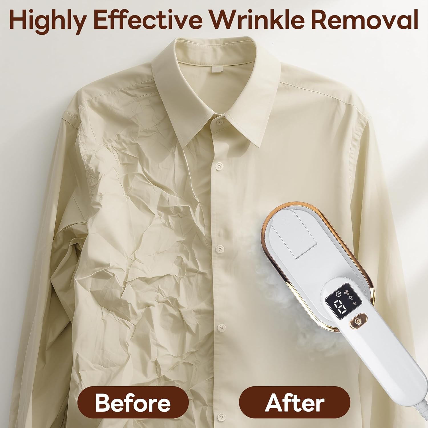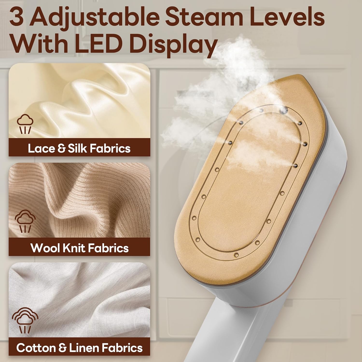 - 【Intelligente Touch-Steuerung & LED-Display】Einfache Bedienung via Touch-Display: Wählen Sie aus 3 Dampfstufen (niedrig/mittel/stark) für verschiedene Stoffe. Das LED-Panel zeigt Temperatur & Countdown an. Dieser Mini-Dampfglätter heizt in nur 9