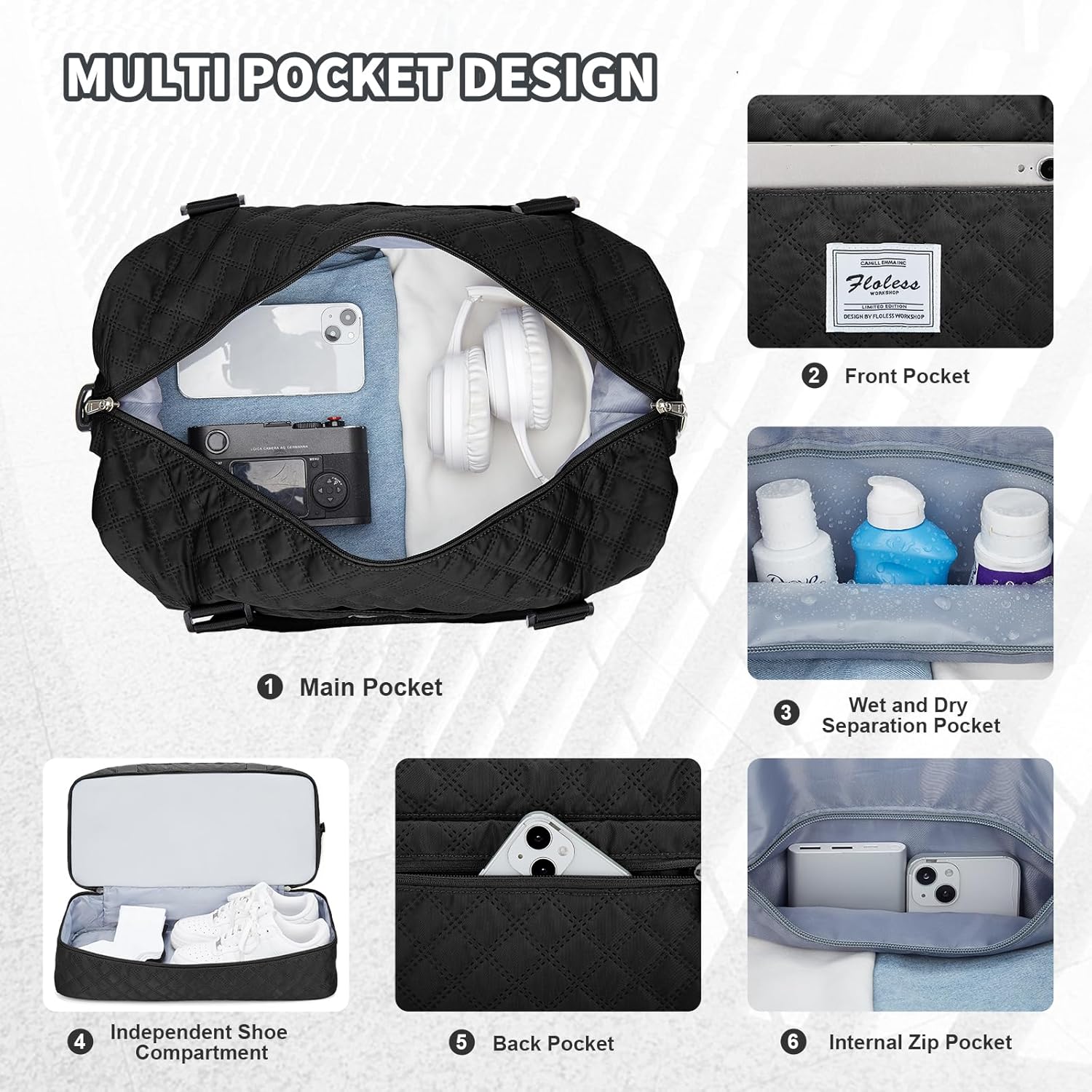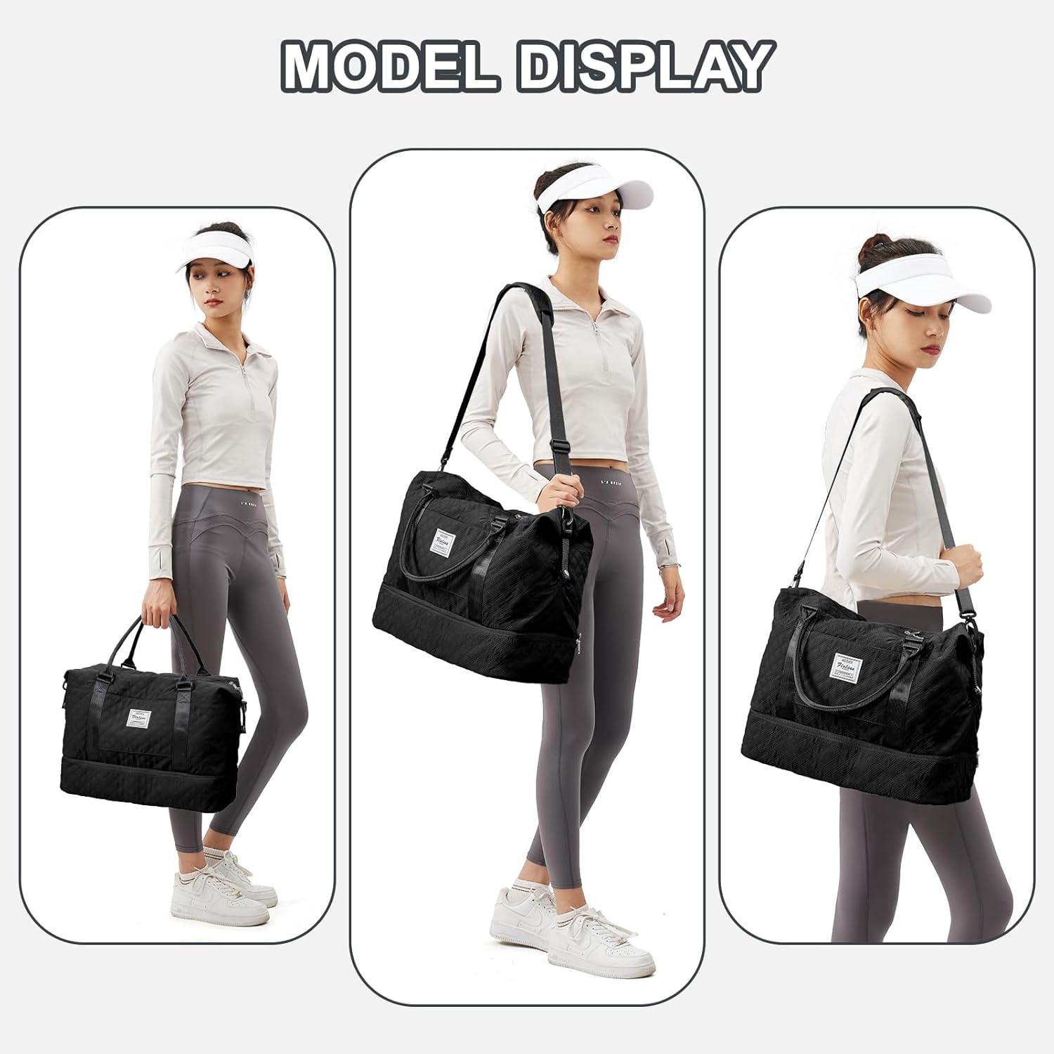 - 【Trockene, nasse, getrennte Reisetasche】 Die Damen-Reisetasche mit einer trockenen und nassen Tasche, die Ihnen helfen kann, trockene und nasse Gegenstände zu trennen. Wenn Sie nasse Kleidung oder ein Handtuch haben, können Sie es in die trockene