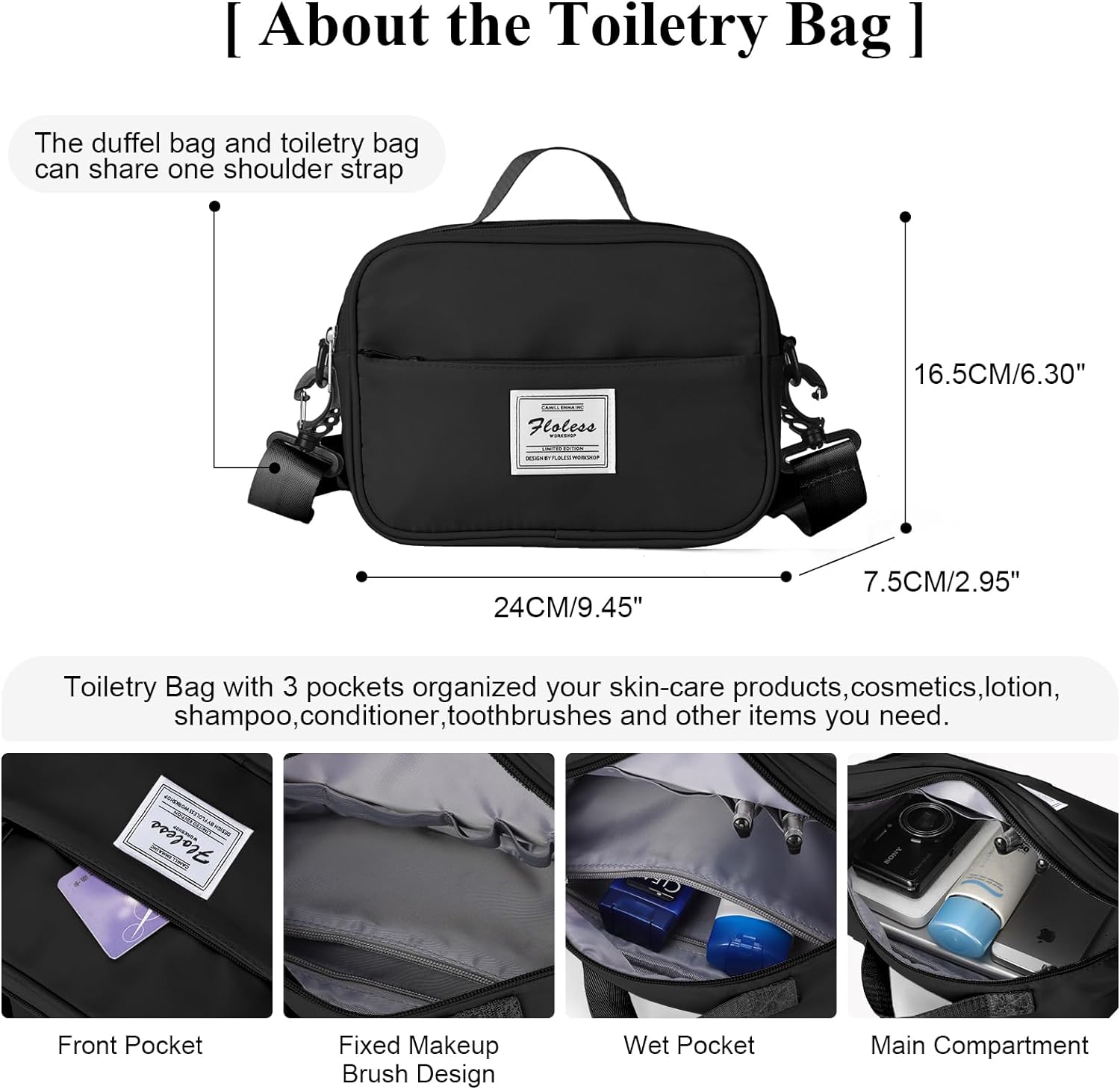 • 【Reisetasche mit Kulturbeutel】 Wochenendtaschen für Damen: 47 x 36 x 22 cm, Kulturbeutel: 24 x 7,5 x 16,5/9,45 x 2,95 x 6,30 Zoll. Grosser Stauraum für die Kleidung für den Kurztrip. Es hat ein Fassungsvermögen von 30 l und bietet Platz für 6