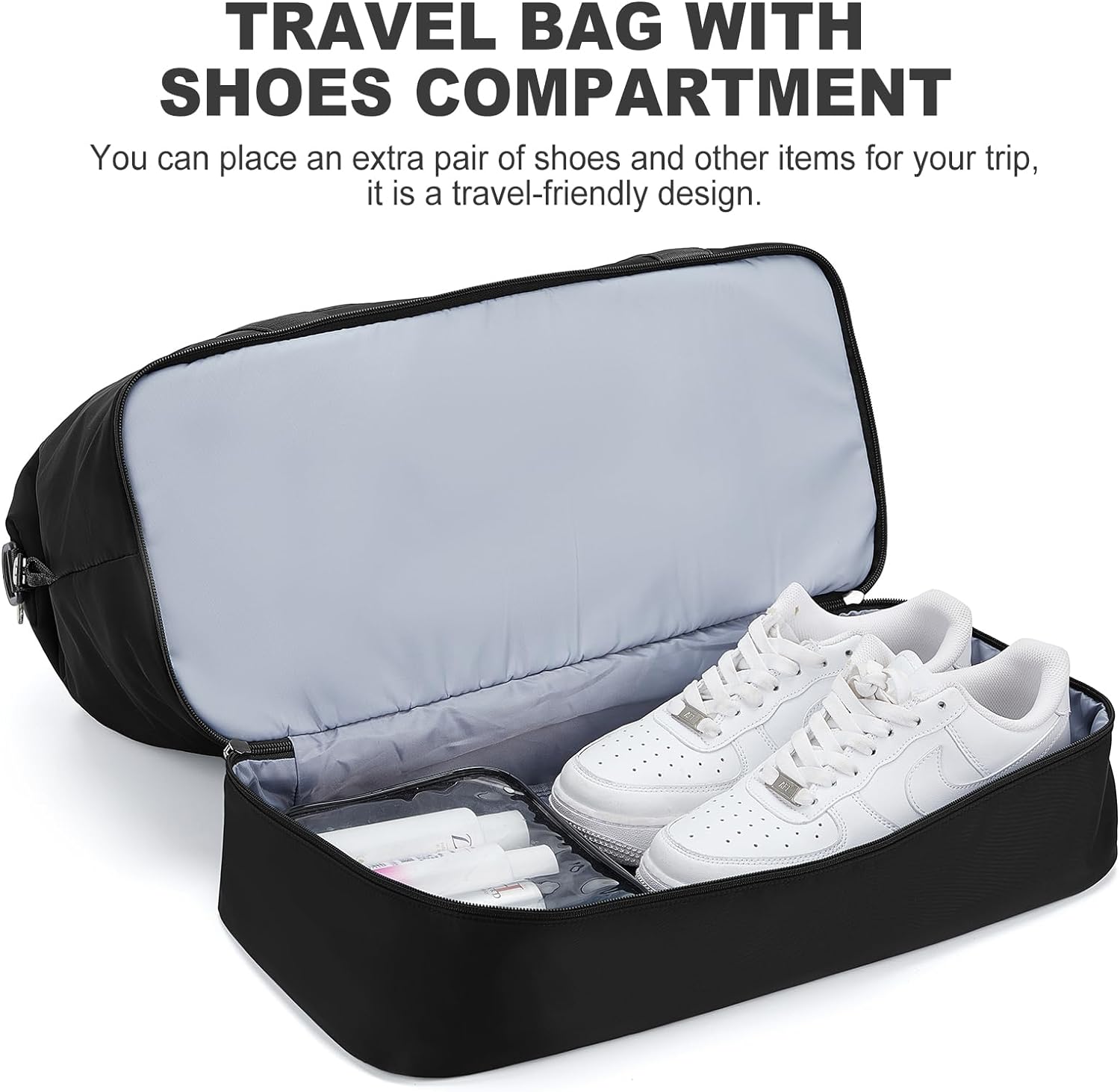 • 【Weekender-Tasche mit Schuhfach】 Ein separates Schuhfach kann Ihnen helfen, Ihre Schuhe besser in Ihrer Reisetasche zu transportieren und aufzubewahren, auch wenn sie schmutzig ist und die anderen Gegenstände trotzdem keine Flecken bekommen.