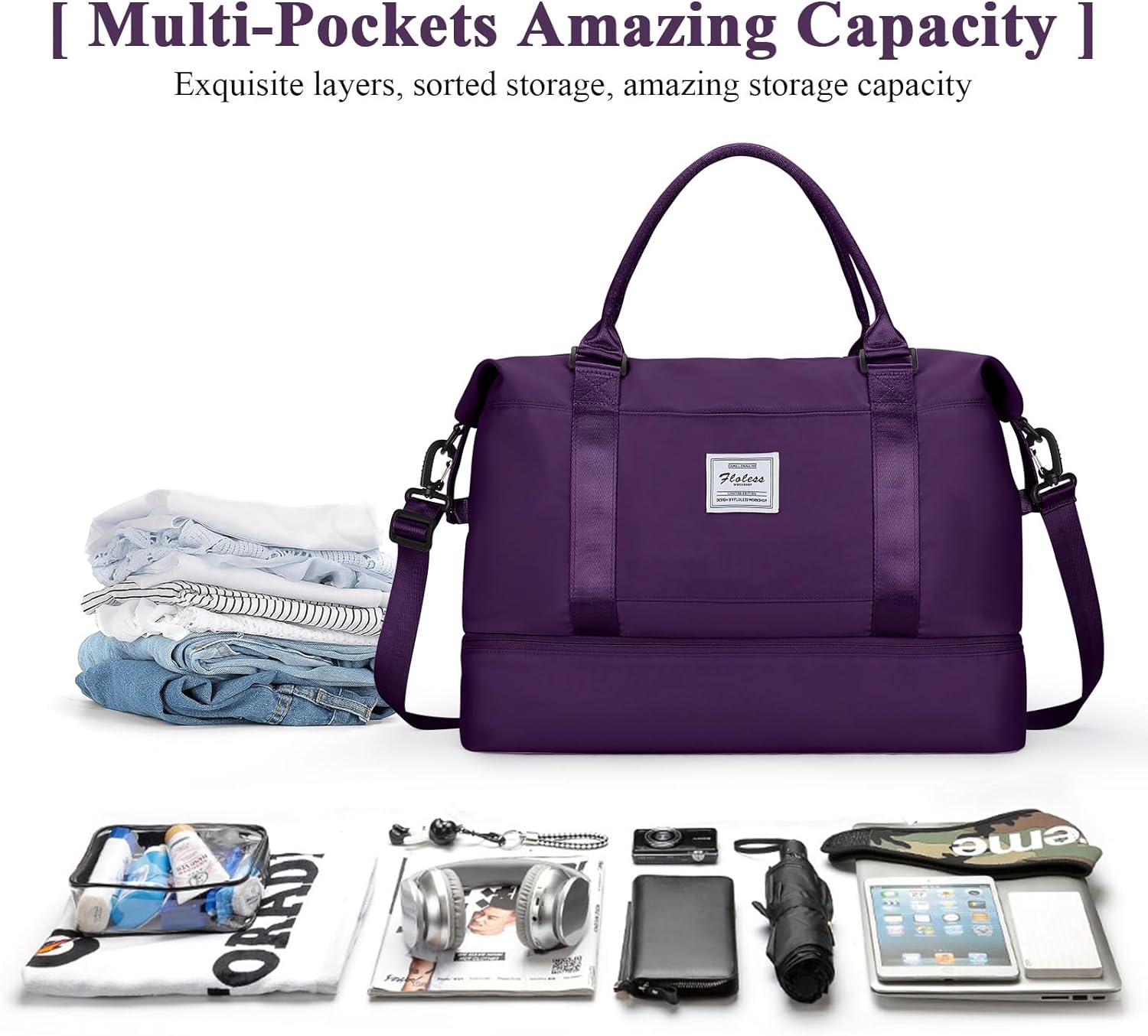 • 【Weekender-Tasche mit Schuhfach】 Ein separates Schuhfach kann Ihnen helfen, Ihre Schuhe besser in Ihrer Reisetasche zu transportieren und aufzubewahren, auch wenn sie schmutzig ist und die anderen Gegenstände trotzdem keine Flecken bekommen.