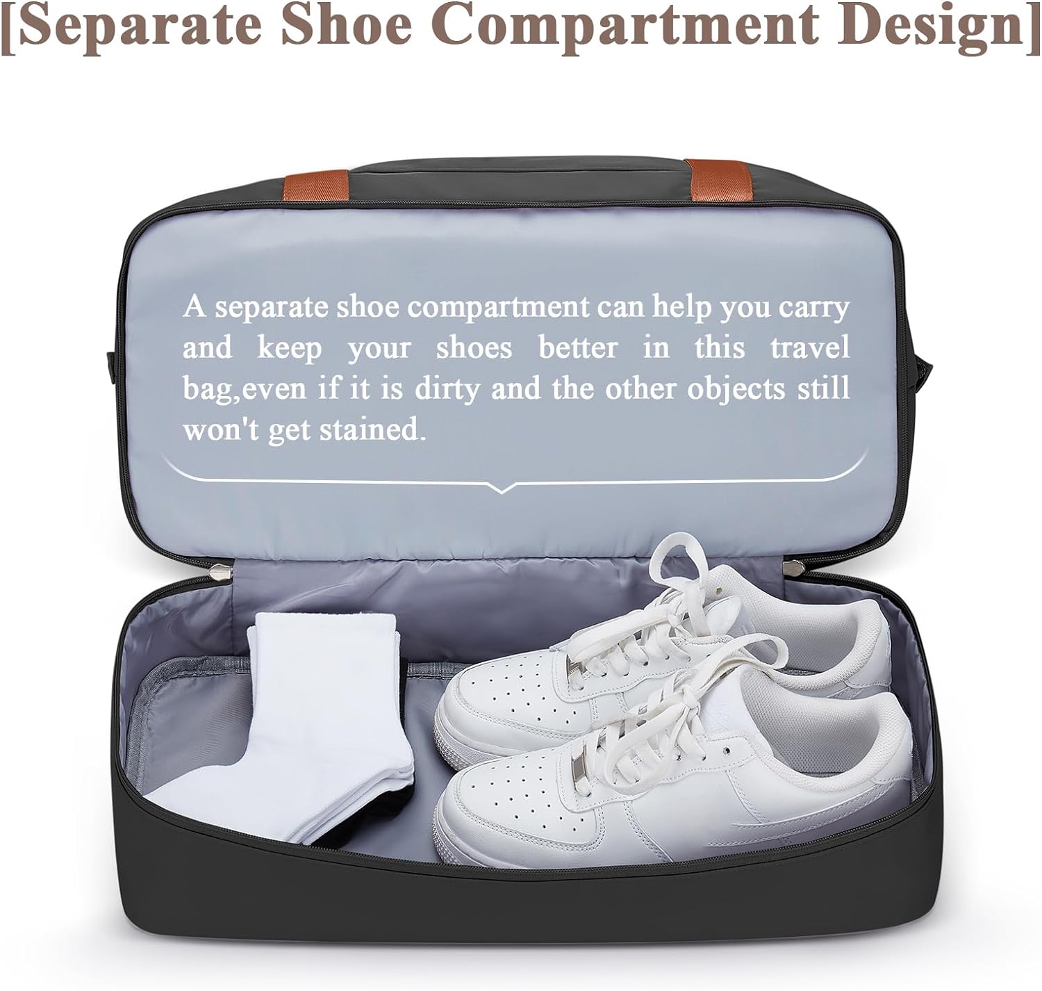 • 【Weekender-Tasche mit Schuhfach】 Ein separates Schuhfach kann Ihnen helfen, Ihre Schuhe besser in Ihrer Reisetasche zu transportieren und aufzubewahren, auch wenn sie schmutzig ist und die anderen Gegenstände trotzdem keine Flecken bekommen.