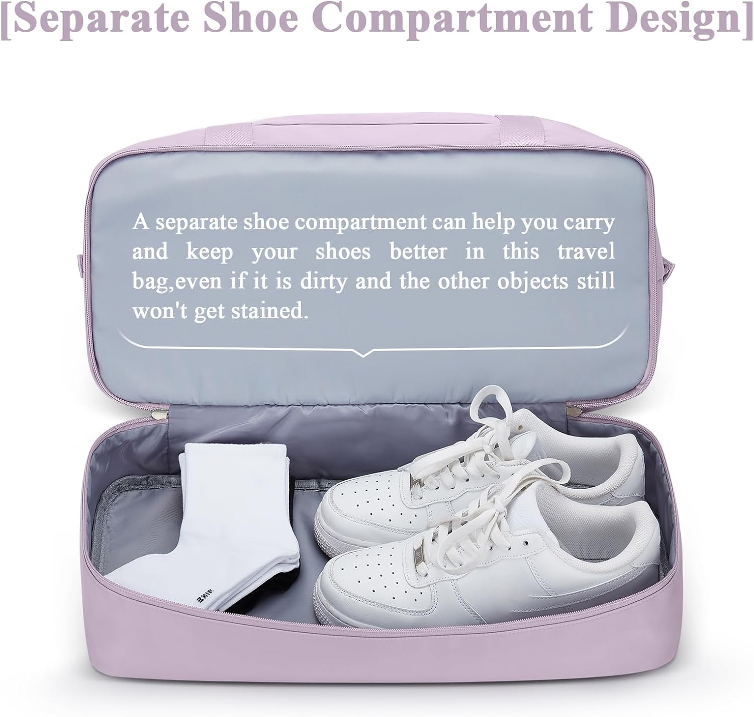 • 【Weekender-Tasche mit Schuhfach】 Ein separates Schuhfach kann Ihnen helfen, Ihre Schuhe besser in Ihrer Reisetasche zu transportieren und aufzubewahren, auch wenn sie schmutzig ist und die anderen Gegenstände trotzdem keine Flecken bekommen.