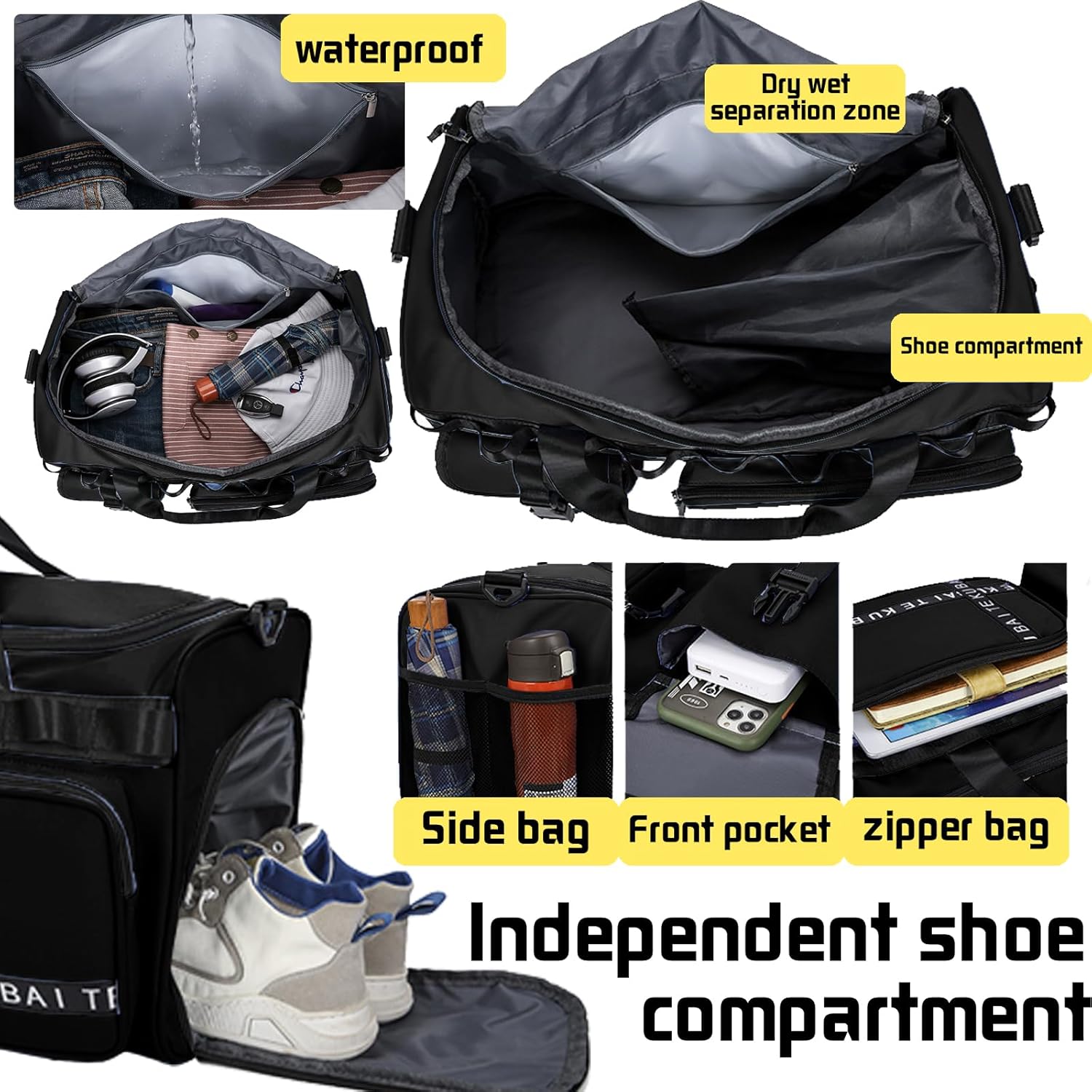 - 【Mehrere Fächer Sporttasche】 Unsere Sporttasche verfügt über mehrere Taschen, darunter 1 Haupttasche, 1 Reissverschlusstasche mit Nass-Trockenfach, 1 Schuhtasche, 2 Vordertaschen, 1 Gesässtasche, 2 Seitentasche und 10 Ringverschlüsse zur