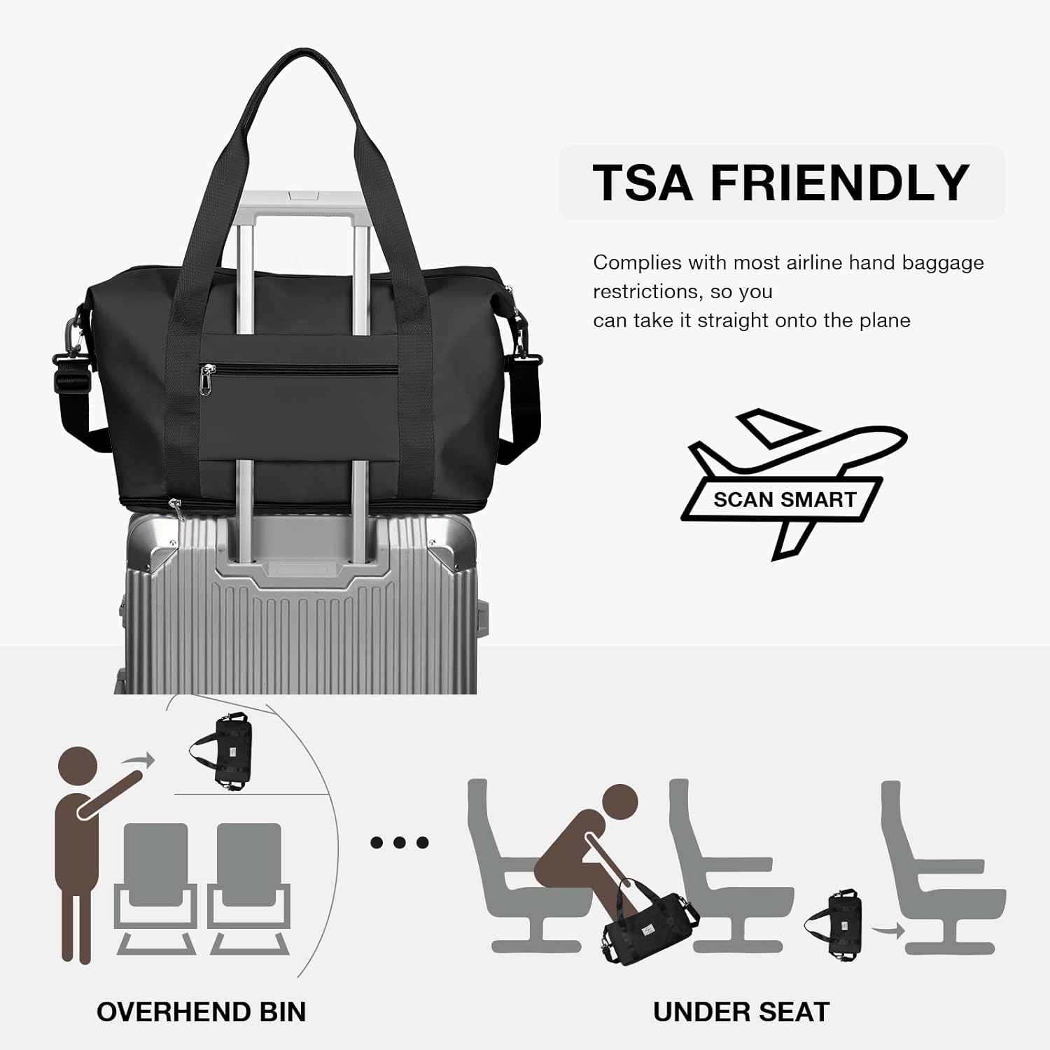 - 【Flugzeugfreundliche Reisetasche】 Die Reisetasche ist die perfekte Handgepäcktasche für Flugreisen. Die integrierte Trolley-Hülle gleitet über den Rollgepäckgriff und macht das Reisen am Flughafen zum Kinderspiel. Ihre ideale