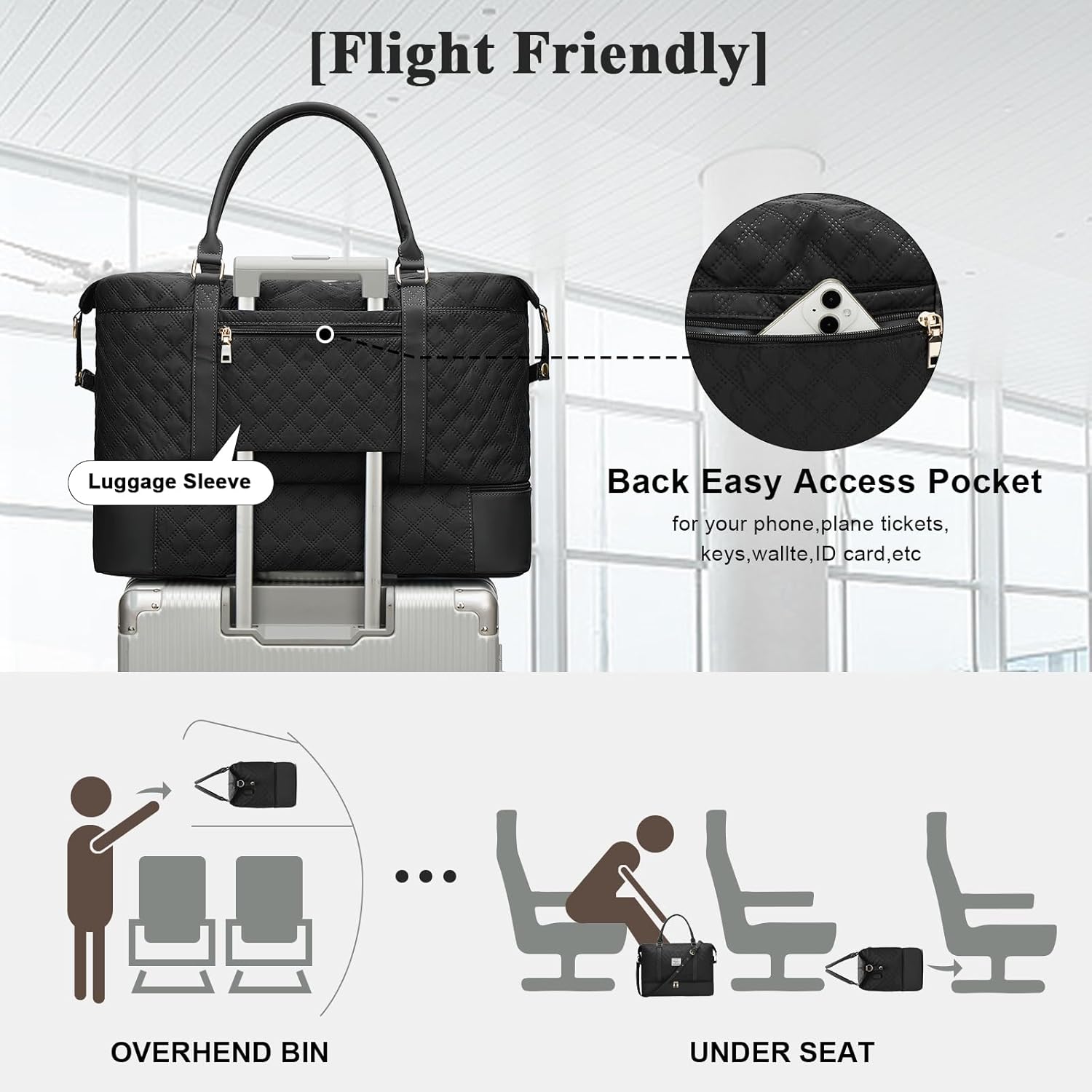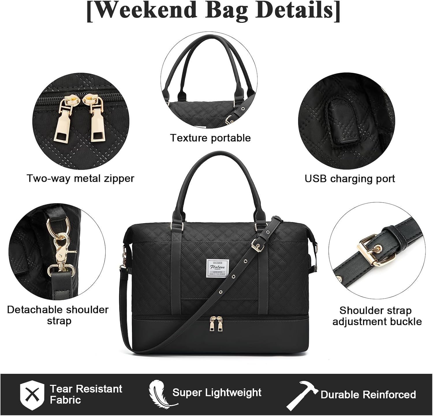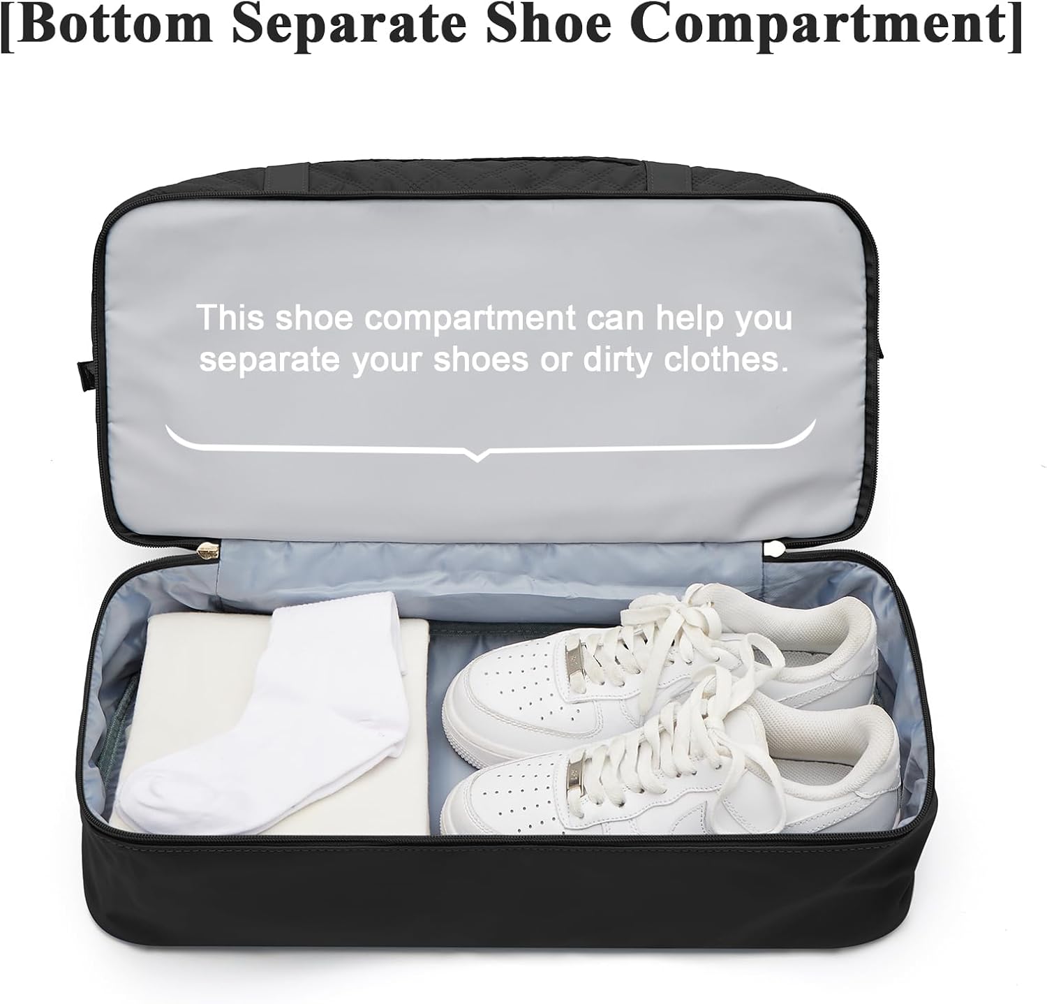 • 【Weekender-Tasche mit Schuhfach】 Ein separates Schuhfach kann Ihnen helfen, Ihre Schuhe besser in Ihrer Reisetasche zu transportieren und aufzubewahren, auch wenn diese schmutzig ist und die anderen Gegenstände trotzdem keine Flecken bekommen.