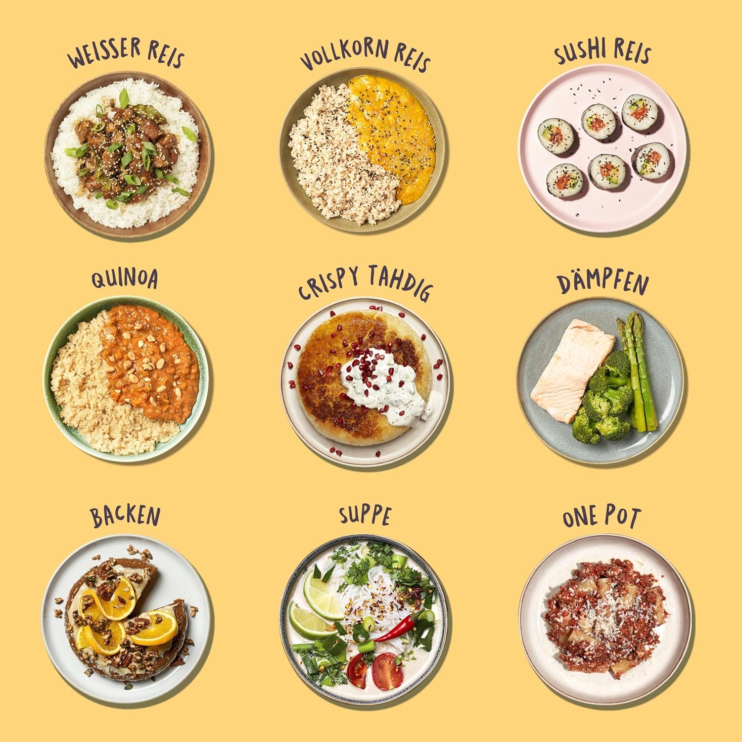 - 🍚 12 KOCHMODI + 1 GRATIS KOCHBUCH – Damit du direkt durchstartest, kommt der Reiskocher jetzt mit unserem Reiskocherkochbuch! Lass dich von den Rezepten inspirieren und entdecke die 12 verschiedenen Programme: Reis, Weisser Reis, Vollkorn Reis, Sushi Reis, Crispy, Congee, Turbo, Quinoa, Getreide, Suppe, Dämpfen und Backfunktion