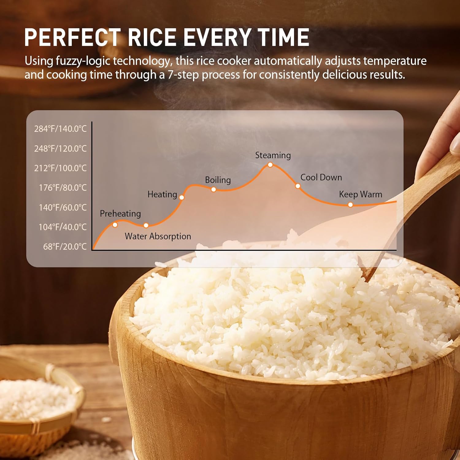 - Multifunktional: Dieser kompakte Reiskocher bietet 10 Kochprogramme, darunter Low-Carb, Schnellreis, Weissreis, Vollkornreis, Mischkorn, Quinoa, Dämpfen und Haferbrei. Ideal für Sushi-Reis, Suppen, Eintöpfe, Chili, Anbraten, Slow Cooking und sogar