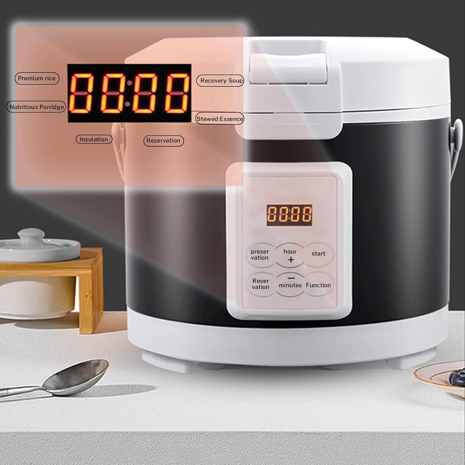 - 【Verwendung】Der Reiskocher für Auto hat ein Fassungsvermögen von 2 l und ist für den Einsatz zu Hause und im LKW geeignet. Es ist zum Kochen von Reis, Haferbrei, nahrhaften Eiern und warmen Speisen konzipiert. Dieser Mini-Reiskocher könnte ein
