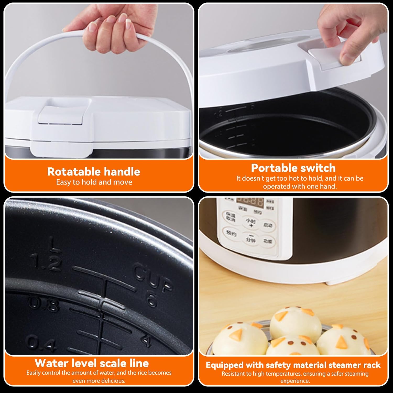 - 【Leicht zu tragen】 Doppelte Griffe machen es bequemer für den Transport und Reisen im Freien. Es ist die erste Wahl für weisse Kragen, Studenten, dynamische Menschen und Singles. Er kocht nicht nur Reis, sondern wird auch mit einer Dampfplatte