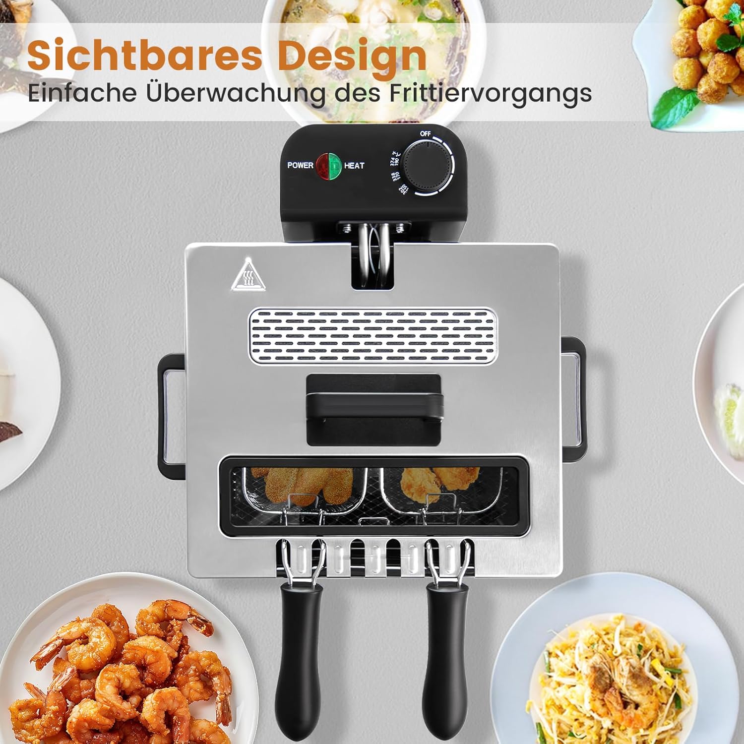 - ★ Erweiterte Sicherheitsfunktionen ★ Diese Friteuse mit fett ist mit einem Überhitzungsschutz und rutschfesten Füssen ausgestattet, um einen sicheren Betrieb zu gewährleisten. Geniessen Sie beruhigende Sicherheit, während Sie gesunde und