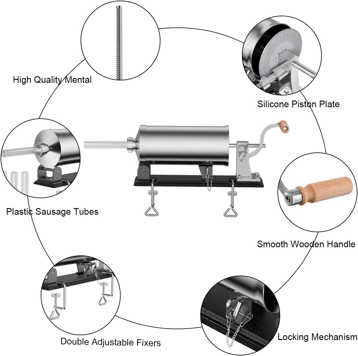- ★ Grosse Kapazität & benutzerfreundliches Design ★ Der Wurstfüller hat grosse Kapazität. Ausreichende Kapazität kann mehr Würste auf einmal machen. Vier verschiedene Spezifikationen von Füllrohre eignen sich zur Herstellung von Würstchen in