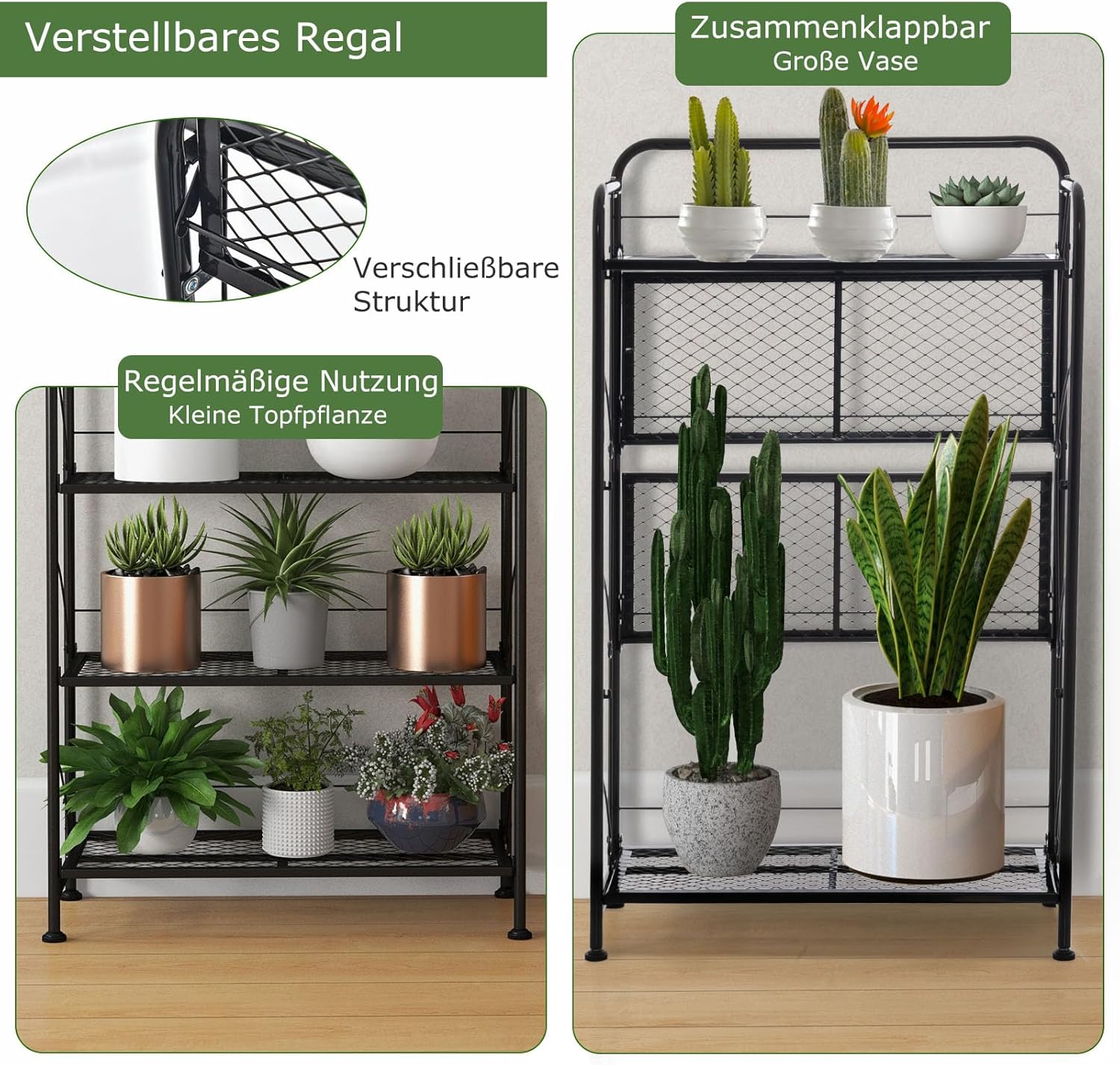 - ★ Faltbares Design ★ Das faltbare Blumenregal kann separat angepasst werden, um Pflanzen unterschiedlicher Höhe unterzubringen, sodass sie flexibel an Ihre Gartenbedürfnisse angepasst werden können. Und wenn Sie das Rack nicht verwenden, können