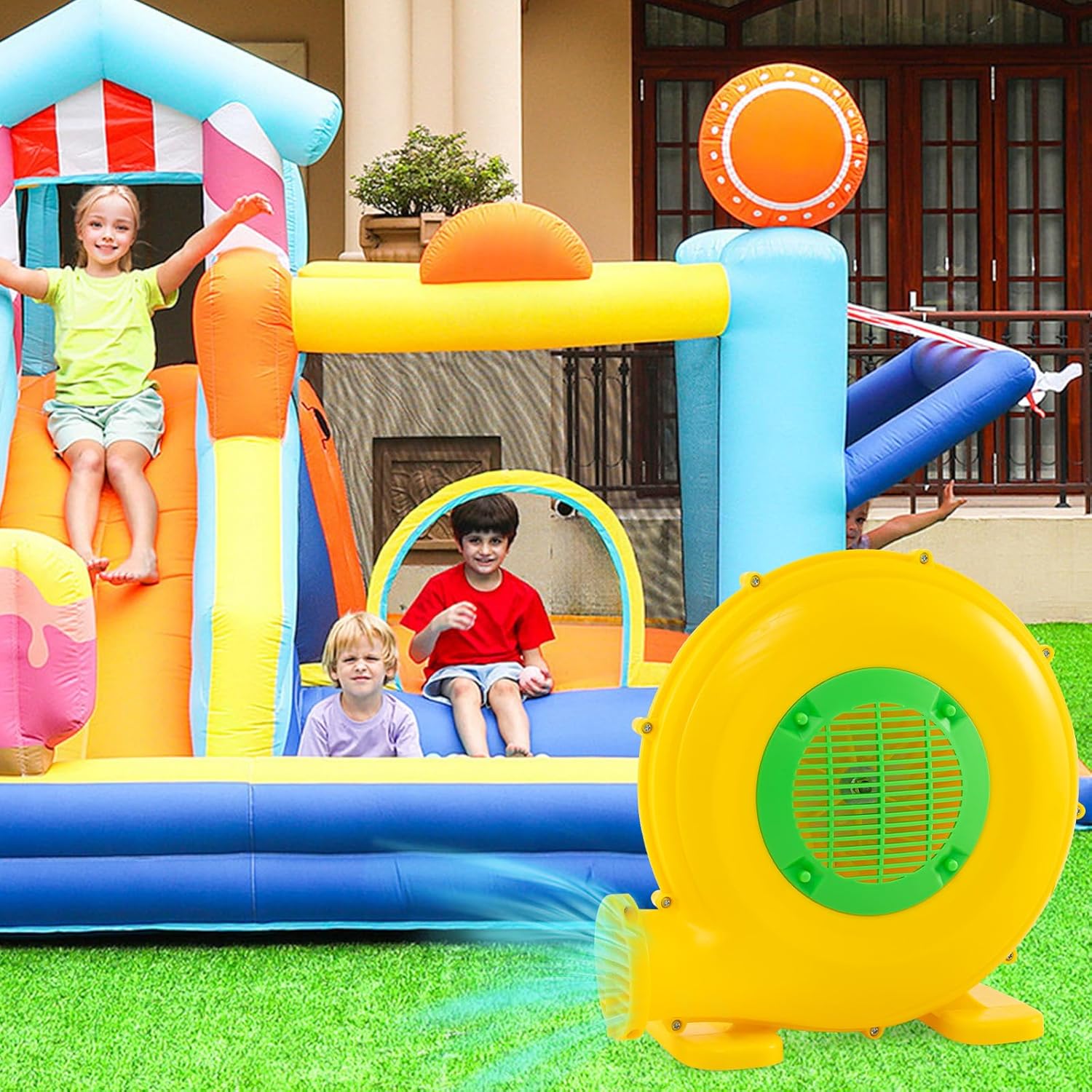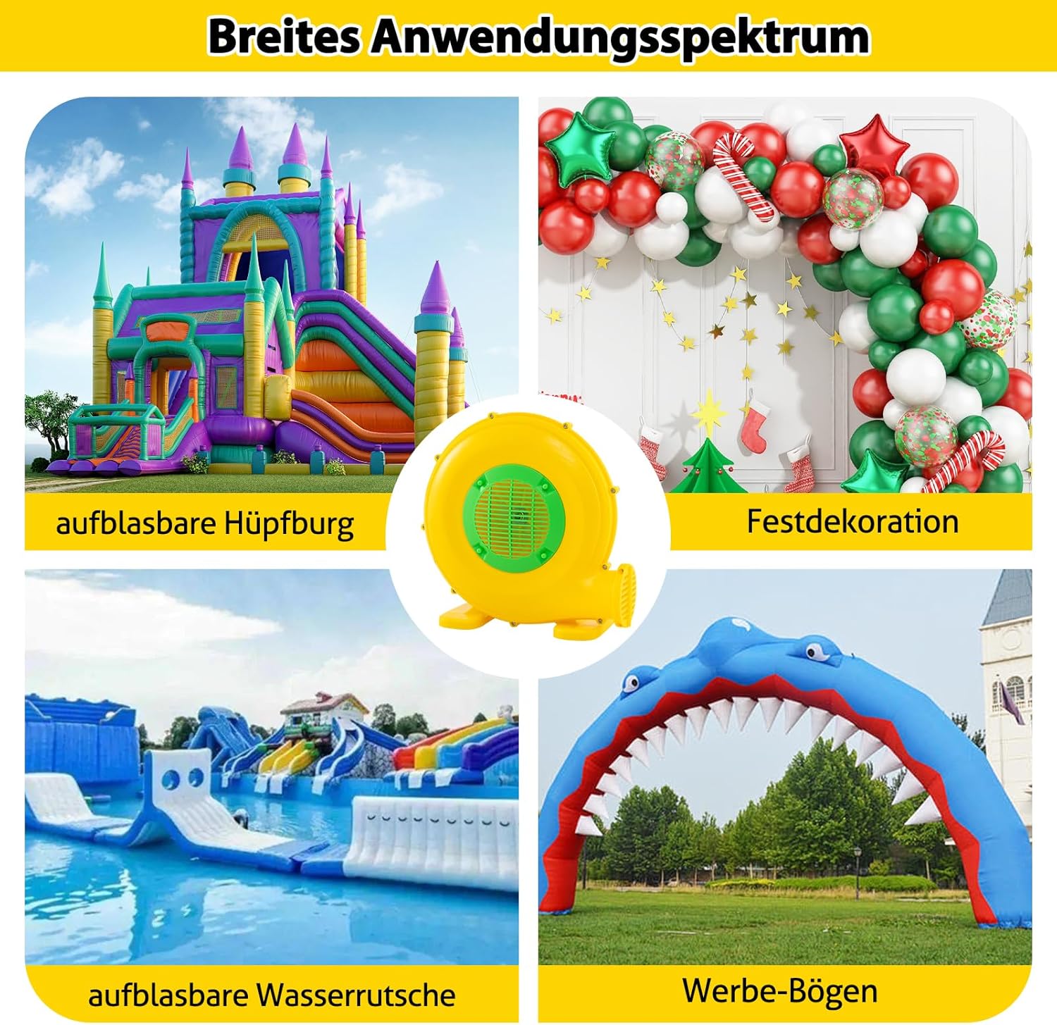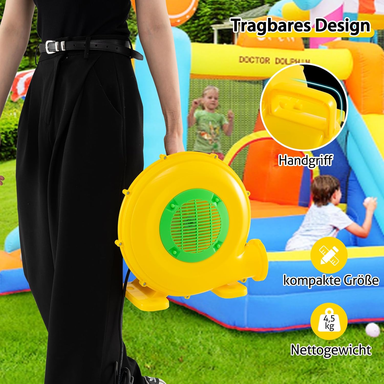 - ★ Schnelles Aufblasen ★ Dank des leistungsstarken 450W-Motors ermöglicht dieses Luftgebläse ein hohes Luftvolumen von 850 m³/h und einen Luftdruck von 1.650 Pa. Es eignet sich für Hüpfburgen, Wasserrutschen und Partydekorationen und bietet mehr