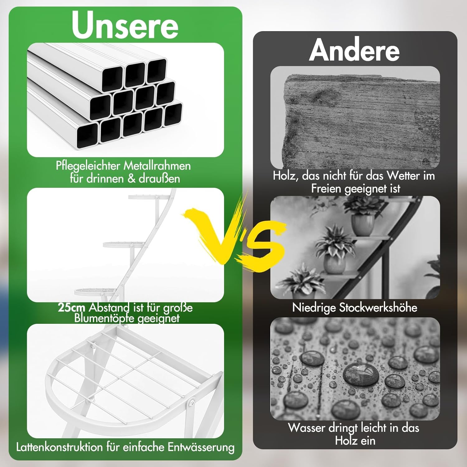 - ★ Benutzerfreundliche Details ★ Die oberflächenbeschichtete Blumentreppe verlängert nicht nur die Nutzungsdauer, sondern erleichtert auch die tägliche Reinigung. Ausserdem lässt das ausgehöhlte Design überschüssiges Wasser leicht ablaufen.