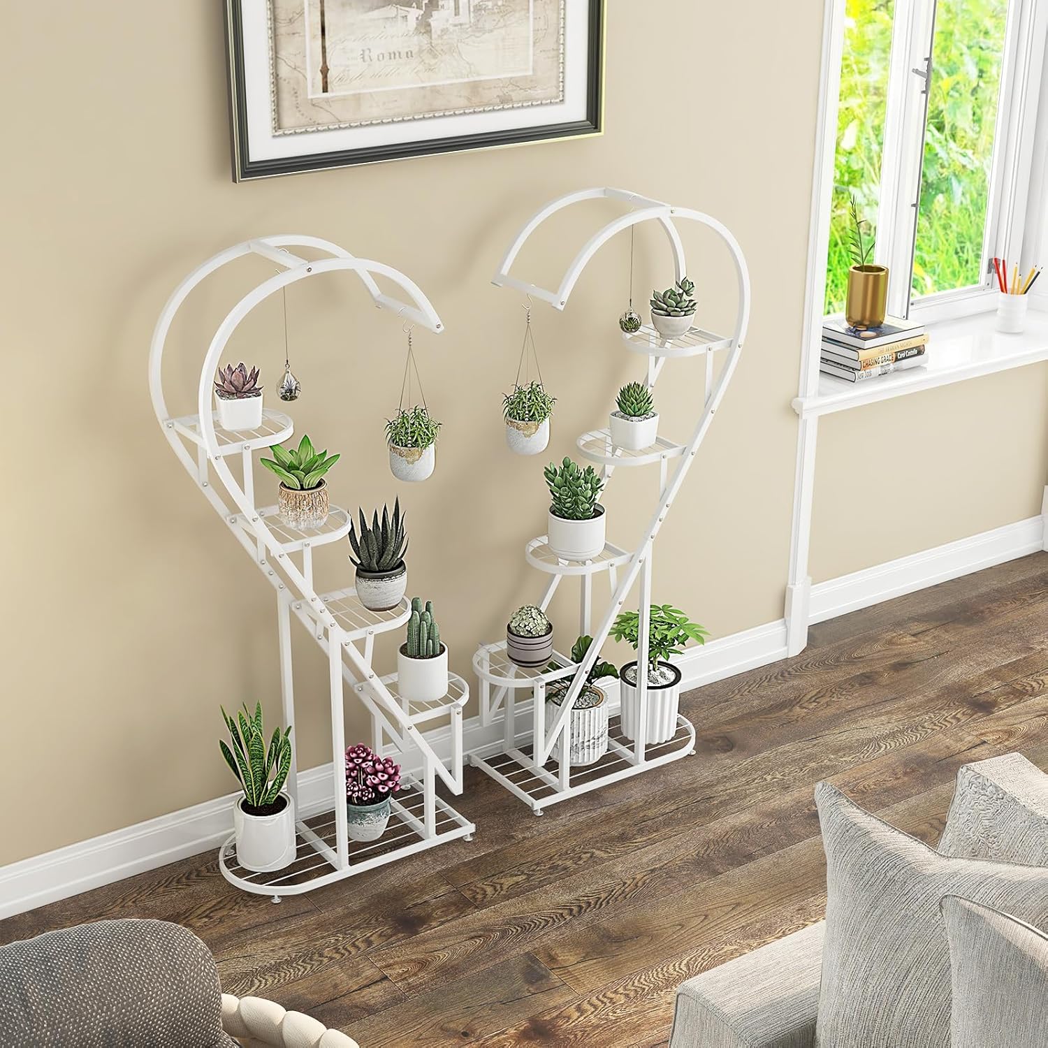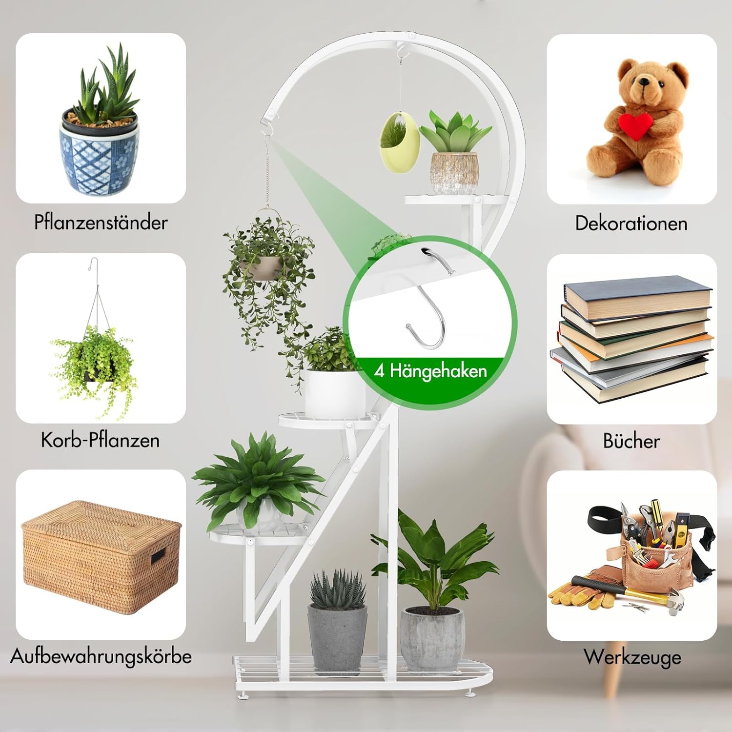 - ★ 5-stufiges Design ★ Das 5-stufige Pflanzenregal bietet reichlich Stauraum für Pflanzen, Bücher und mehr und schafft so einen aufgeräumten Lebensraum. Darüber hinaus ist jeder Pflanzenständer mit 2 Haken für hängende Pflanzenkörbe