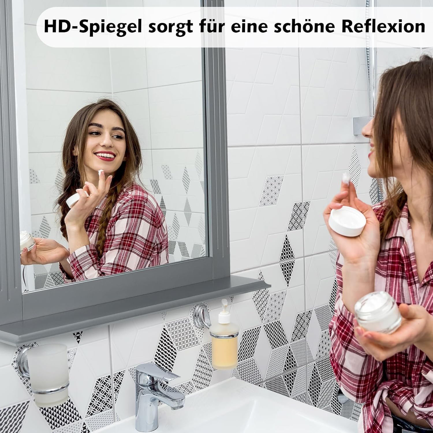 • ★ Praktischer Stauraum ★ Dieser Wandspiegel verfügt über eine geräumige Ablage, die Ihnen zusätzlichen Stauraum bietet. Sie können kleines Badzubehör wie Hautpflegeprodukte, Zahnbürstenbecher, Kämme oder Brillen sowie Schlüssel darauf